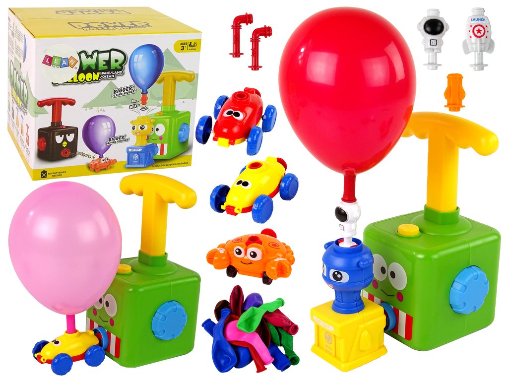 Začněte tím, že si vyberete barvu balonku a nasaďte ho na auto. Poté připojte auto na katapult a pomocí páky napučte balon. Po naplnění balónku vzduchem stiskněte tlačítko GO na katapultu a auto vystřelí jako z praku. Kterak rychle oběhne pokoj! K dispozici jsou auta ve tvaru závodních aut nebo krabů.