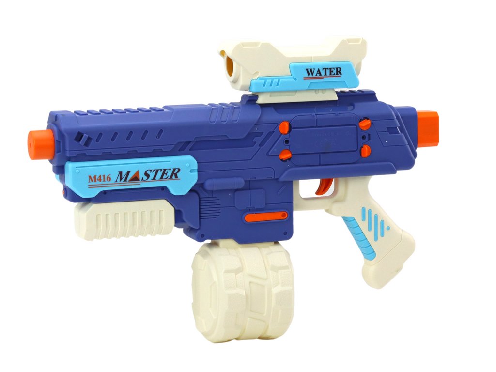 Tato futuristická puška s působivým vzhledem v odstínech modré a bílé s oranžovými akcenty je dokonalým společníkem pro letní dobrodružství dětí i dospělých.
