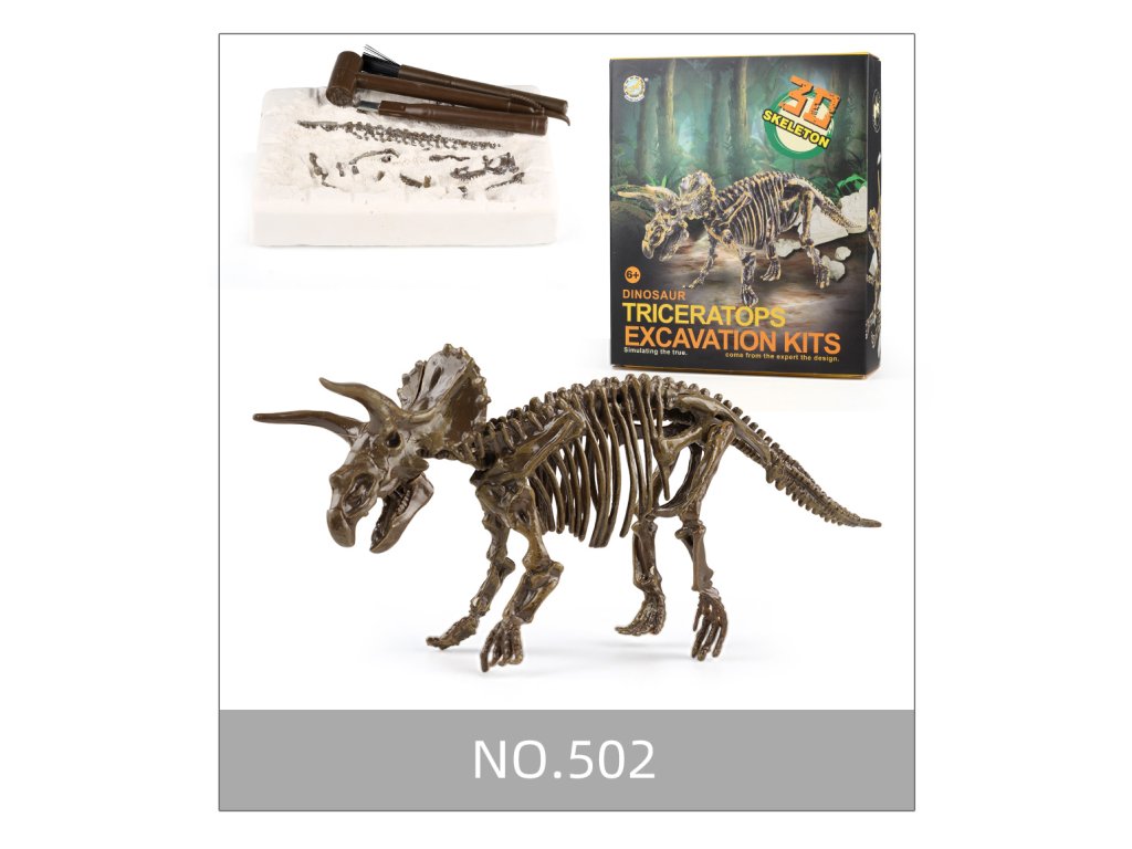 Zábavná archeologická sada, kde děti mohou pomocí nástrojů postupně odkrýt uložené části kostry a následně složit realistický 3D model Triceratopse. Ideální pro malé badatele a fanoušky dinosaurů – rozvíjí trpělivost, jemnou motoriku a učí principy objevování. Kostra po sestavení stojí samostatně, takže ji lze vystavit jako dekoraci do pokoje.