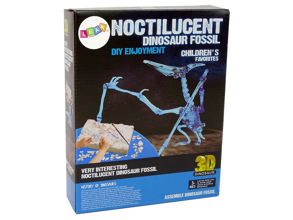 Kostra je sestavitelná, podle návodu v přiloženém popisu a přiloženého nářadí si můžete sestavit kostru dinosaura. Kostra ve tmě svítí. Po očištění kostí je dejte dohromady a vznikne kostra Pteranodona.