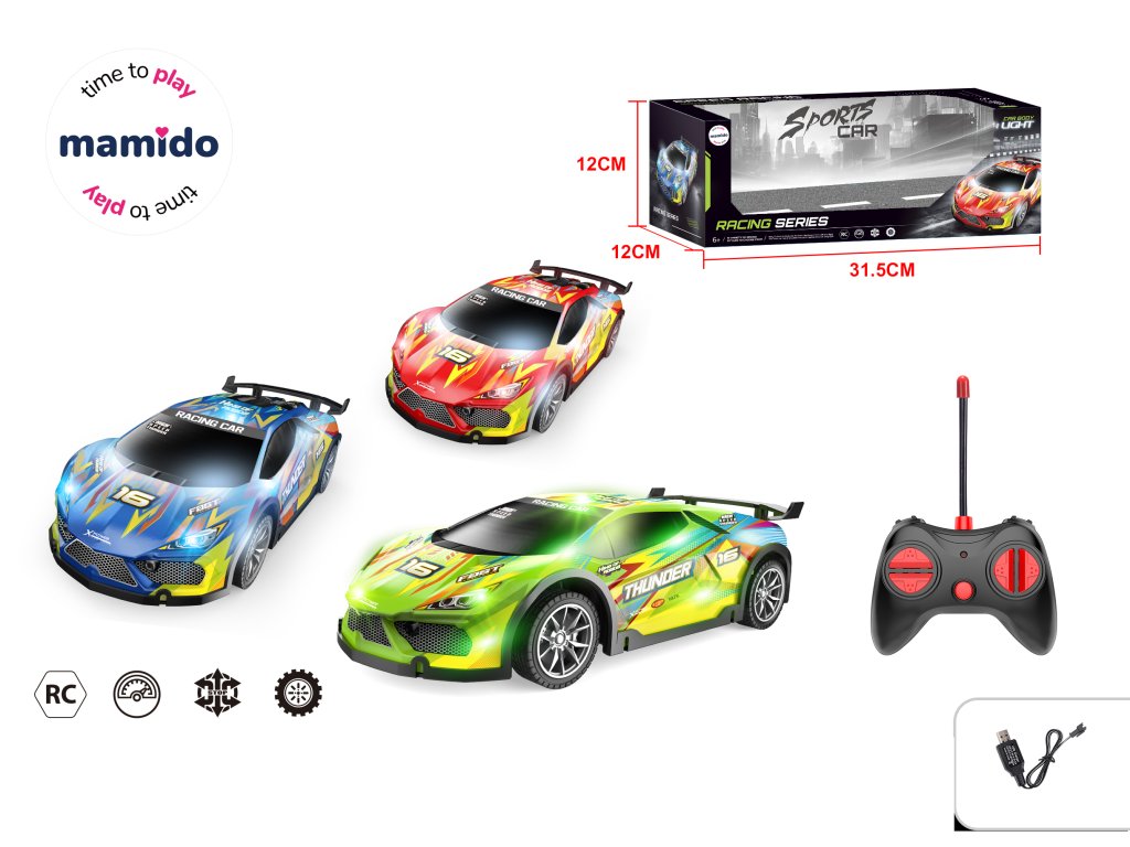 Sportovní RC auto 1:16 potěší každého malého závodníka. Díky snadnému ovládání se pohybuje vpřed, vzad, doleva i doprava a nechybí ani světelné efekty, které dodávají jízdě opravdový nádech závodů. Auto má atraktivní design v závodním stylu a je dostupné v několika barevných variantách.
