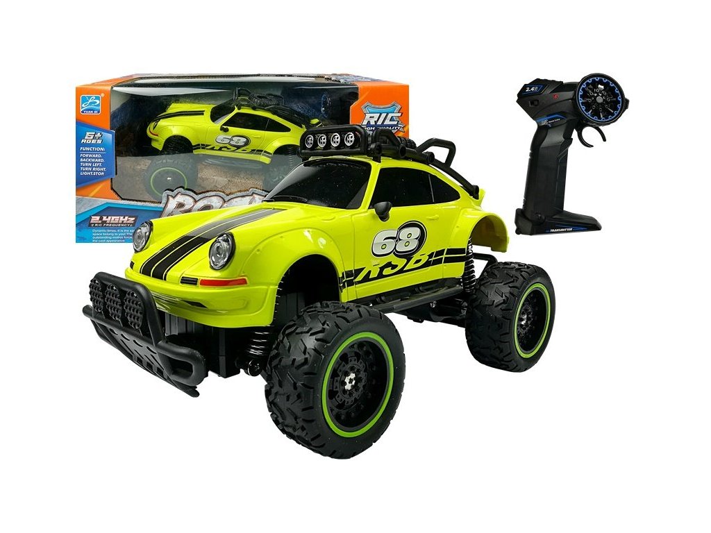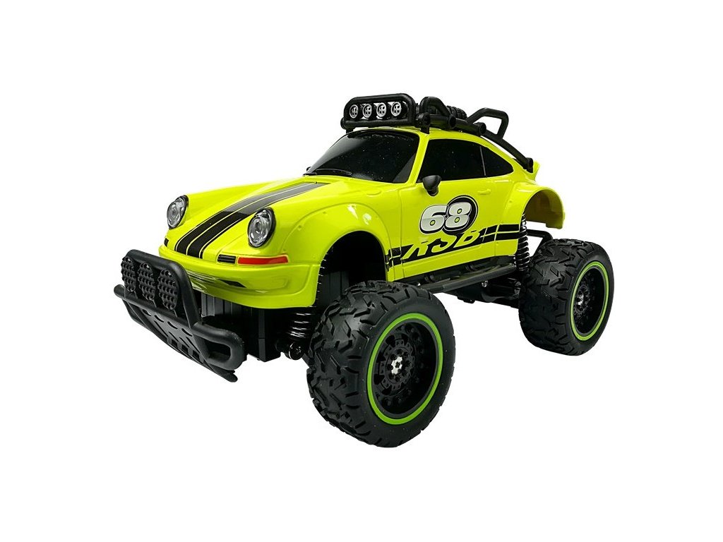 Terénní auto na dálkové ovládání Beetle, které dokáže překonat jakoukoli překážku. Funguje dokonale jak na asfaltu, tak i na nerovných kamenech nebo lesním porostu. Měkká, gumová kola vozidla zaručují vysokou přilnavost k různým typům podloží a velké tlumiče nárazů vám umožňují projet obtížnými překážkami.