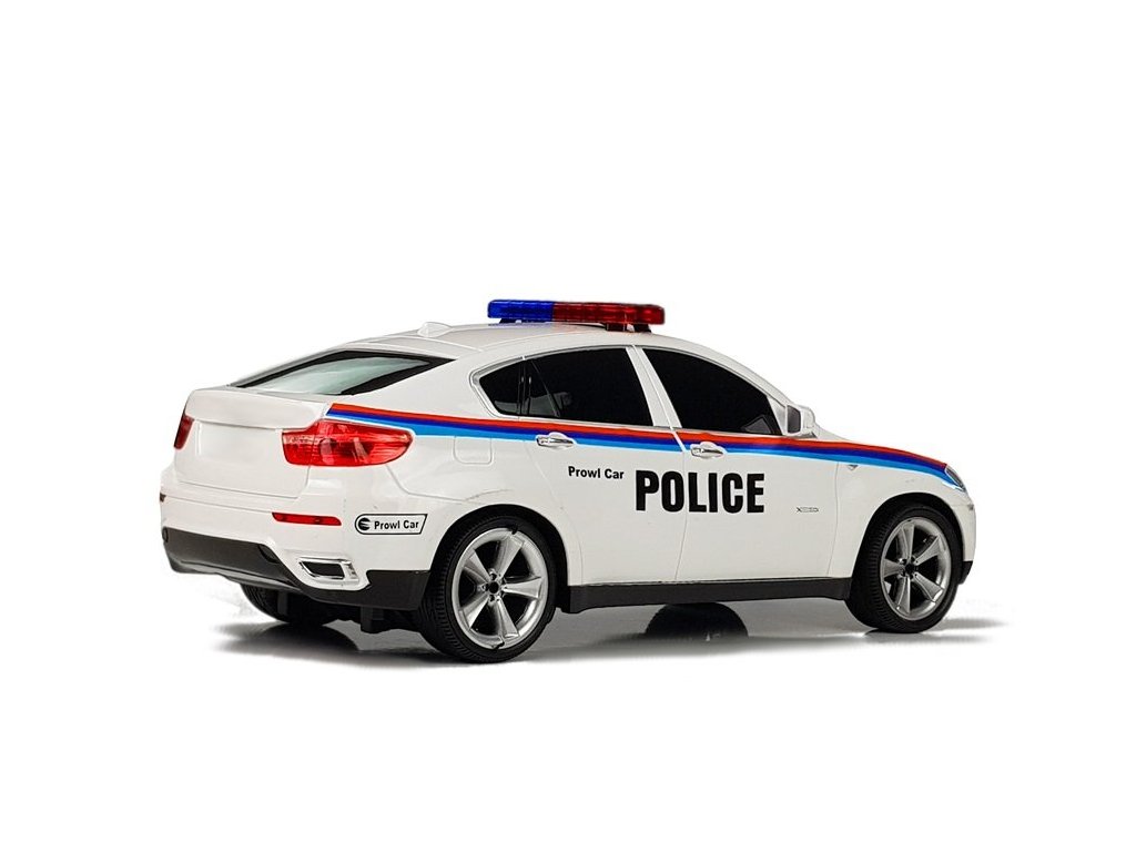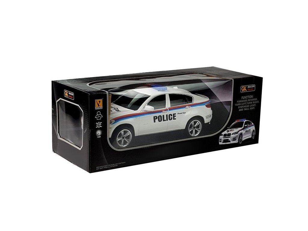 Auto na dálkové ovládání v bílé barvě v policejní verzi je model, který kombinuje sportovní vzhled, vlastnosti kupé a speciální služby. Velkou výhodou prezentovaného vozidla jsou jeho zajímavé funkce - dálkové ovládání umožňující efektivní změnu směru jízdy.