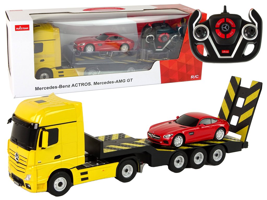 Kamion na dálkové ovládání Mercedes Actros je licencovaný produkt společnosti Rastar. Autíčko je vyrobeno v měřítku 1:26. Kamion má přední a zadní světla, která mají LED osvětlení. Autíčko na dálkové ovládání Mercedes AMG GT je licencovaný produkt společnosti Rastar. Autíčko je vyrobeno v měřítku 1:24.