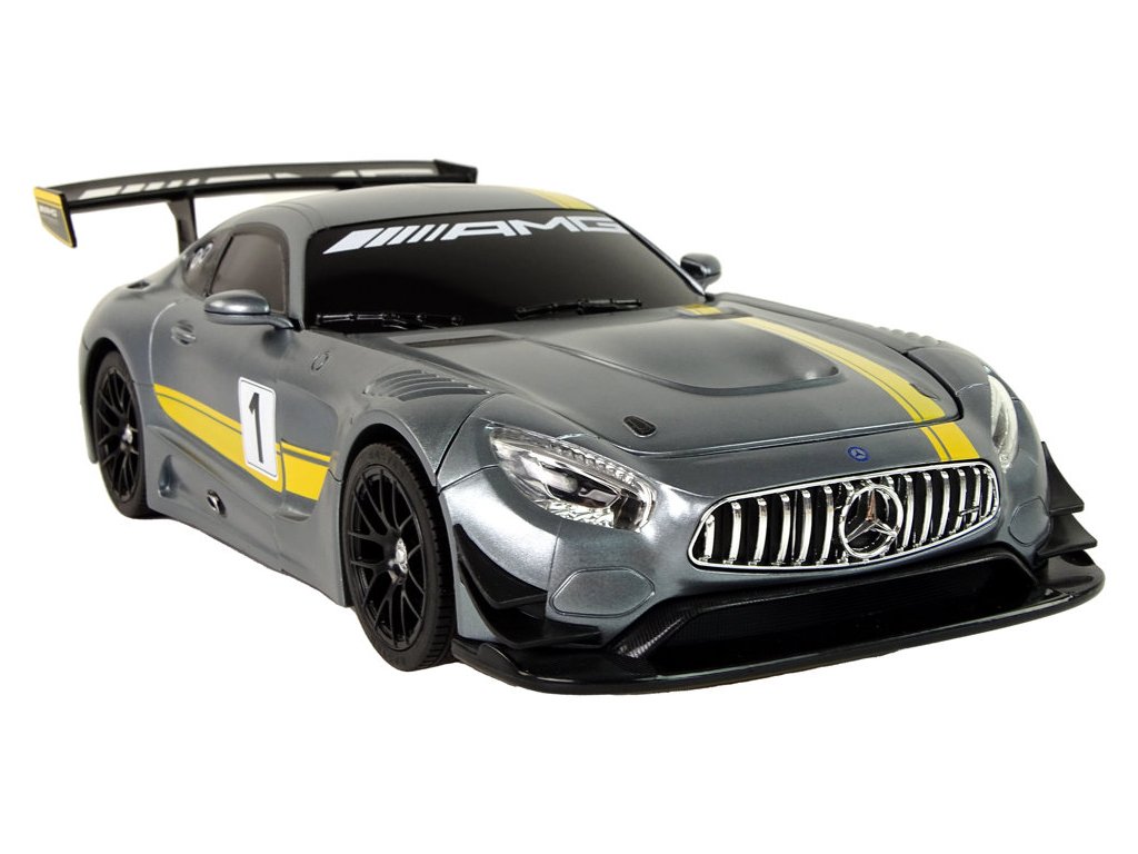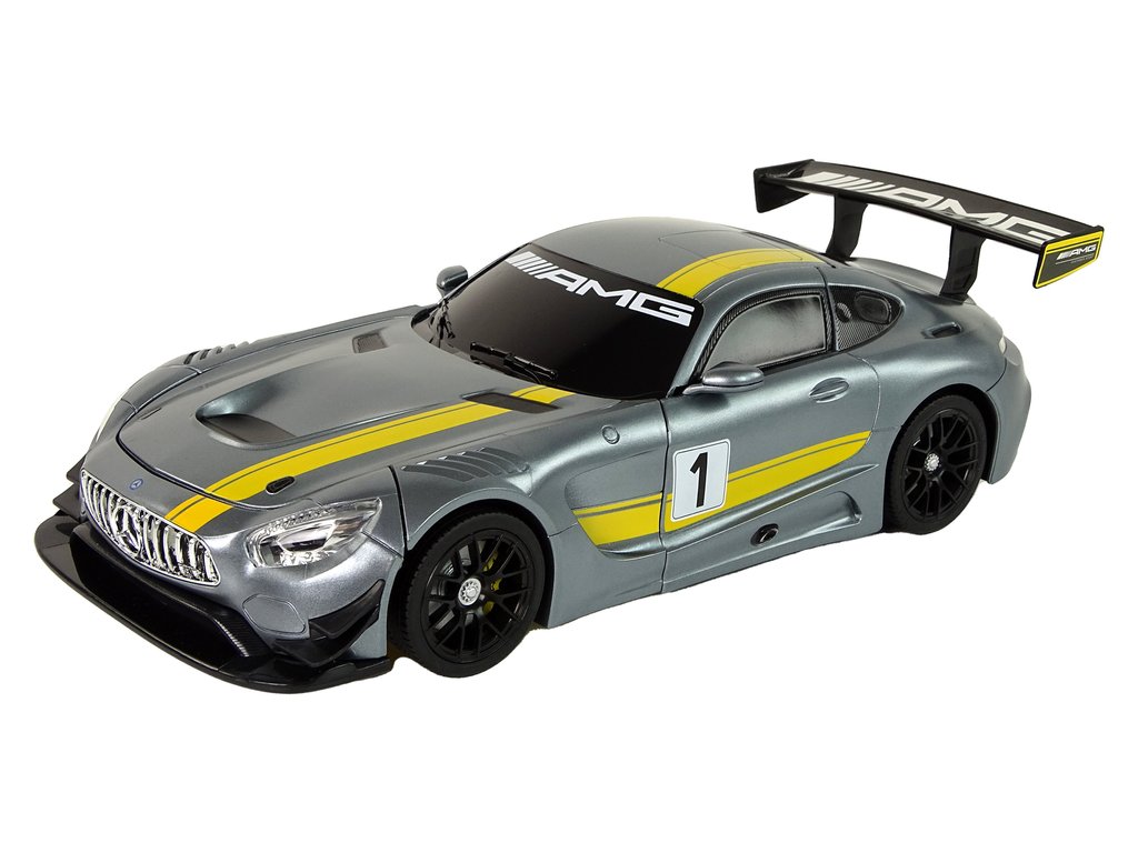 Tento model R/C auta je autentickou replikou Mercedes-AMG GT3. Jeho stříbrná barva se žlutými doplňky mu dodává dynamický a jedinečný vzhled. Na zádi vozidla je charakteristický spoiler, který zdůrazňuje sportovní charakter vozu.