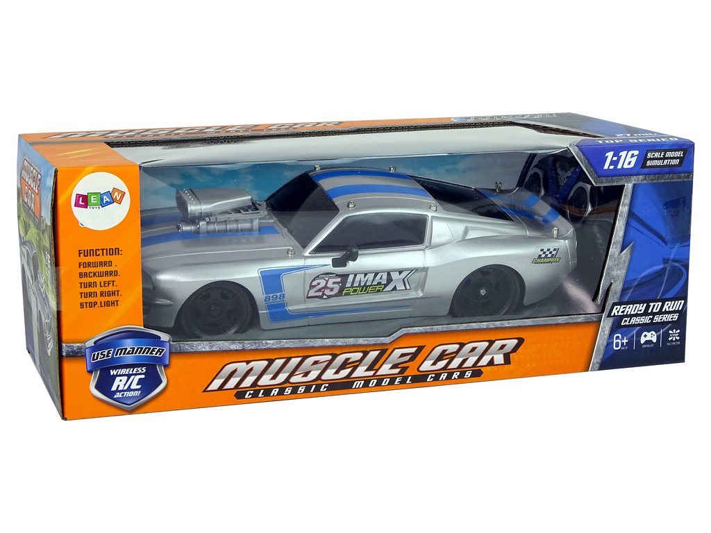 Přiložený dálkový ovladač vám umožní řídit malý model auta, má dvě samostatná tlačítka pro jízdu vpřed/vzad a jízdu ze strany na stranu. Model je vyroben v měřítku 1:16.