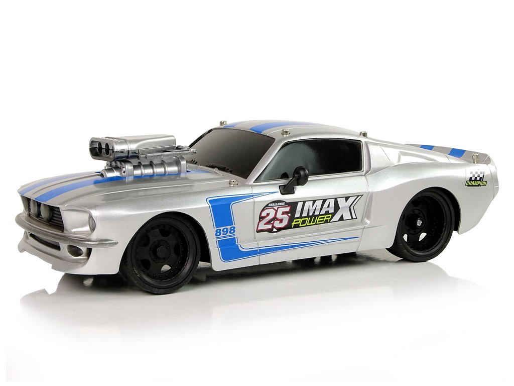 Sportovní auto má lehkou a robustní konstrukci, sportovní design se dvěma modrými pruhy na střeše a stříbrný kompresor na kapotě vozu. Gumové pneumatiky zaručují přilnavost k zemi při řízení vozu.