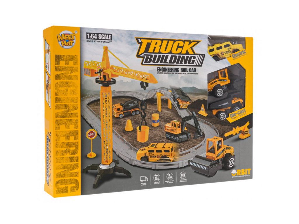 Dobře vybavená autodráha se stavebními autíčky a jeřábem pro děti od 3 let. Sada se skládá z 21 samostatně sestavitelných dílů. Je vyrobena z plastu nejvyšší kvality. Autodráha je vybavena zábranami chránícími autíčka před pádem. Jeřáb má pohyblivé prvky, jako je rameno otáčející se o 360 stupňů a spouštěcí hák (ruční klika). Součástí sady jsou 3 stavební autíčka, jako je sklápěč, válec a elektrické autíčko. Sklápěč a válec mají kovovou karoserii a pohyblivé části. Válec má pohyblivý a otočný buben a sklápěč má zvedací a spouštěcí přívěs.