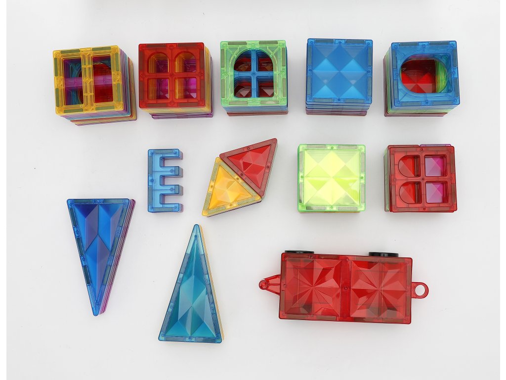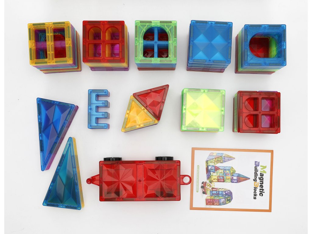 Magnetická stavebnice s barevnými průhlednými dílky přináší nekonečné možnosti tvoření. Děti mohou skládat domy, věže, zvířátka, auta i vlastní fantazijní 3D tvary. Každý dílek má zabudované magnety, díky kterým se stavební bloky stabilně spojují a konstrukce drží pevně pohromadě.
