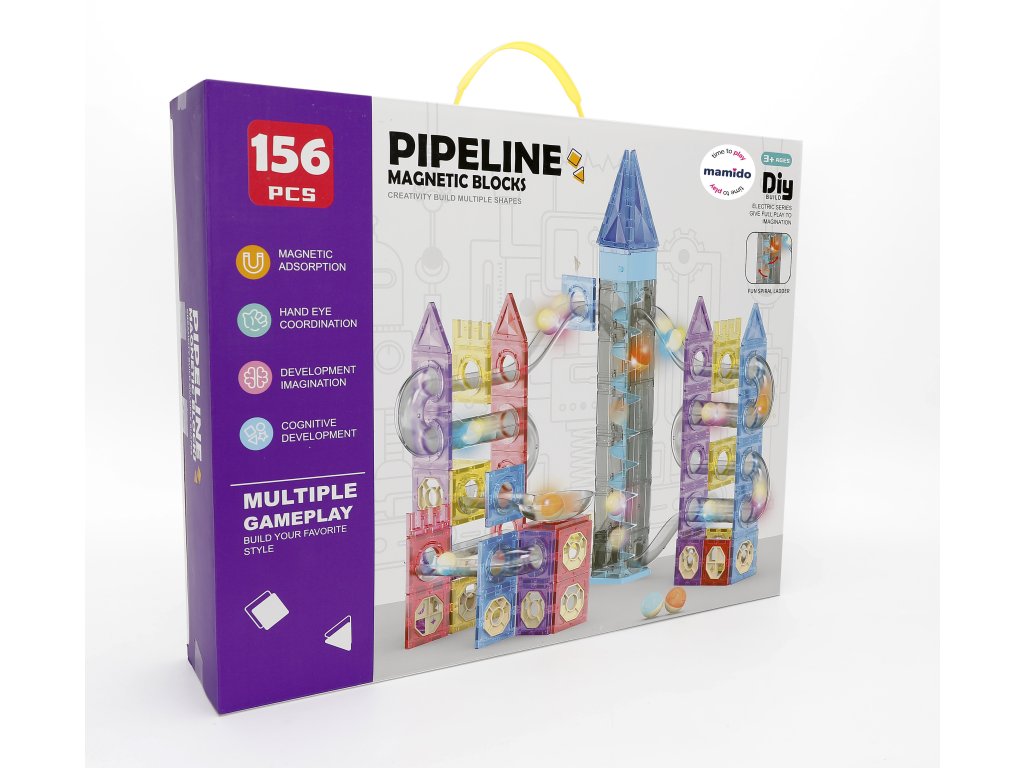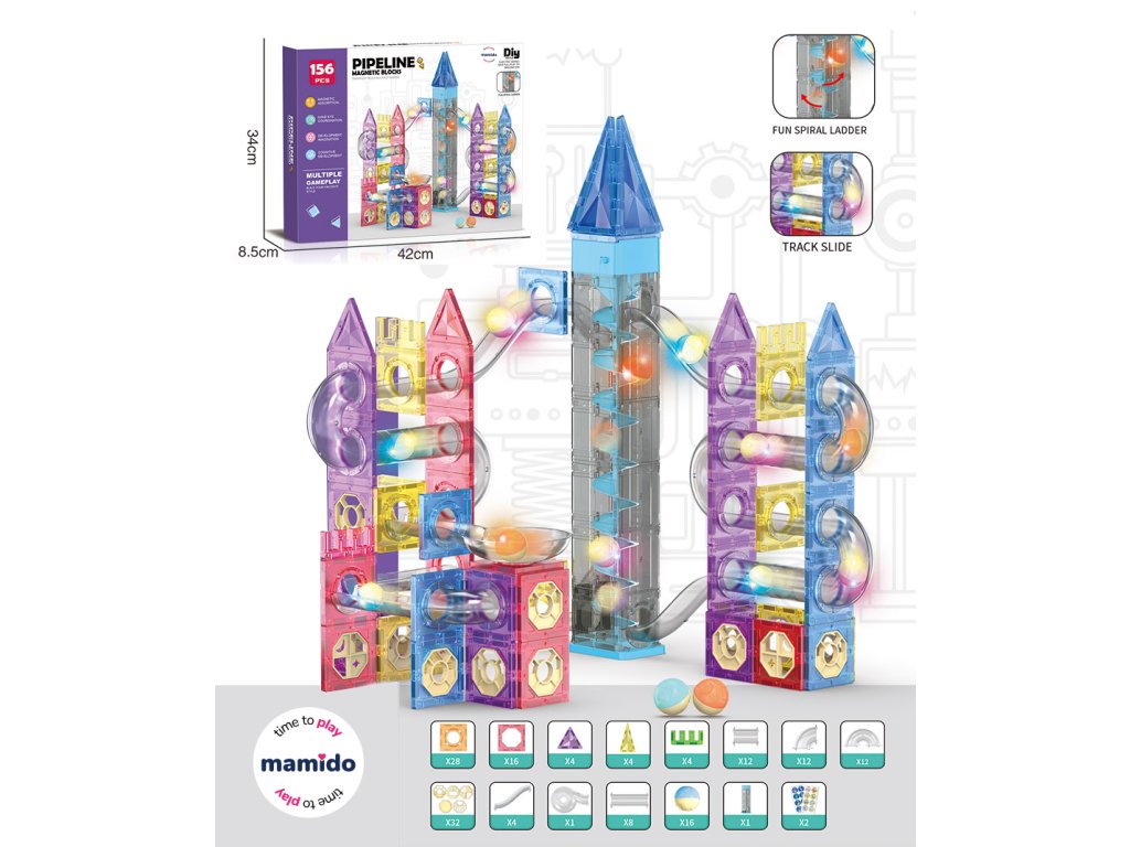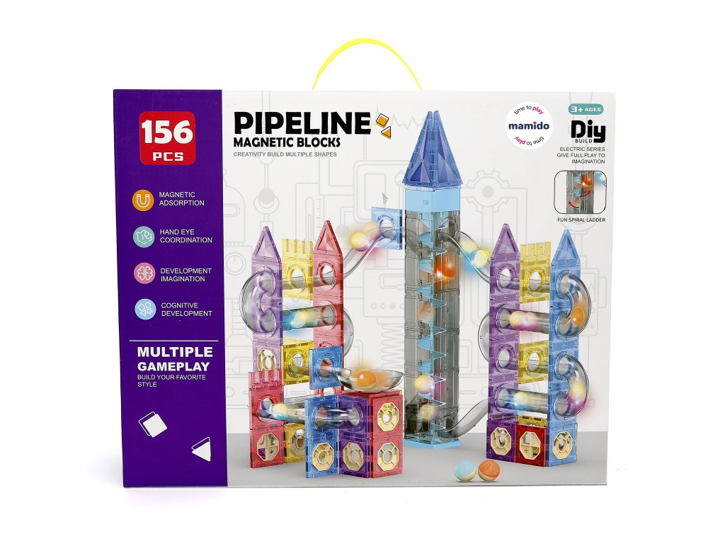 Objevte nekonečné možnosti stavění s magnetickou stavebnicí Pipeline 156 dílů. Barevné průhledné bloky s pevnými magnety umožňují snadné spojování a vytváření stabilních konstrukcí. Unikátní součástí této sady je kuličková dráha s tobogány, spirálovými věžemi a tunely, která přináší ještě více zábavy a interaktivního hraní.