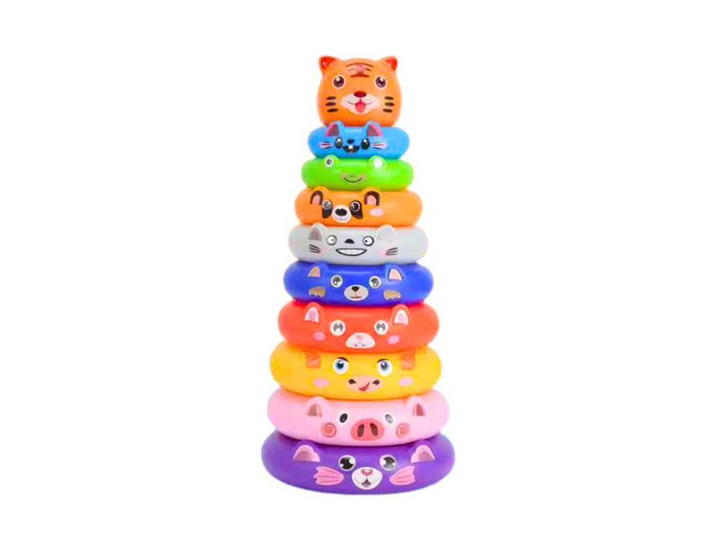 Pyramida z kroužků s nálepkami zvířátek