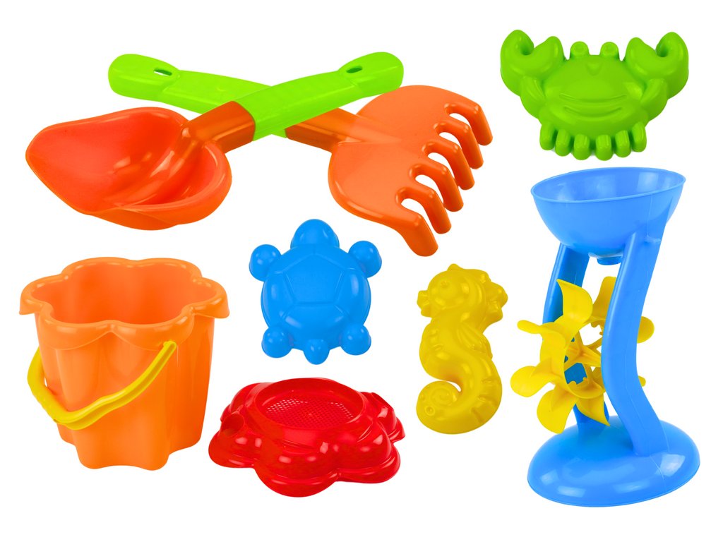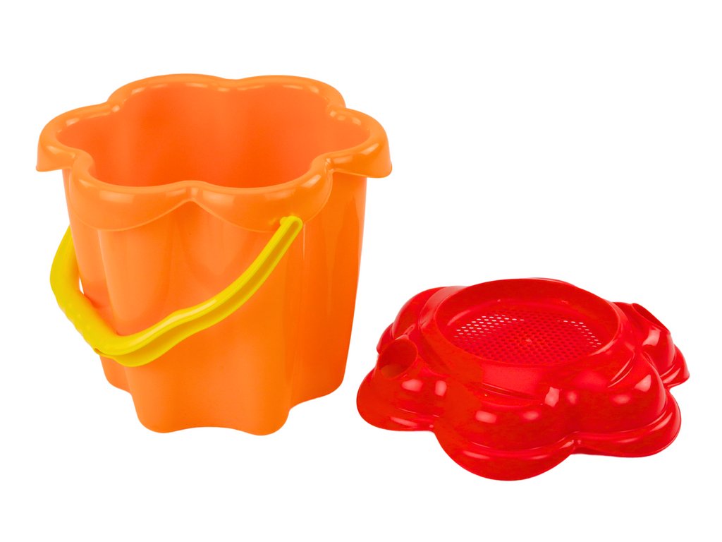 Sada do písku o 9 prvcích je ideální sadou doplňků, která dětem poskytuje spoustu radosti a kreativní zábavy na pláži nebo v pískovišti. Součástí sady je kyblík s víkem ve tvaru květiny. Víko může také sloužit jako sítko, což umožňuje prosévání písku a poskytuje dětem další možnost experimentování a tvorby různých textur a vzorů v písku.