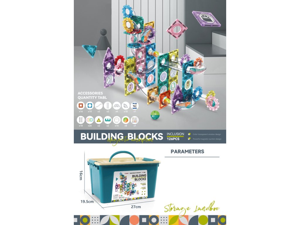 Barevné magnetická stavebnice kuličková dráha 126 dílků