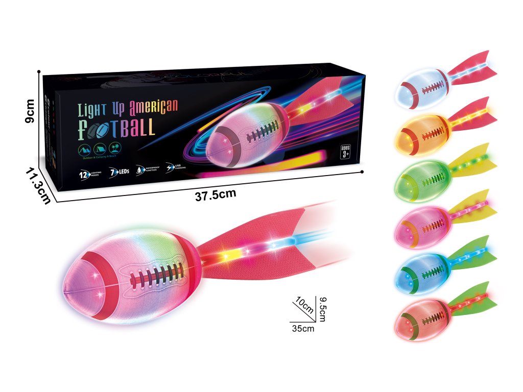 Barevný svítící míč na americký fotbal, rugby s ocasem, 12 světelných režimů MT1581