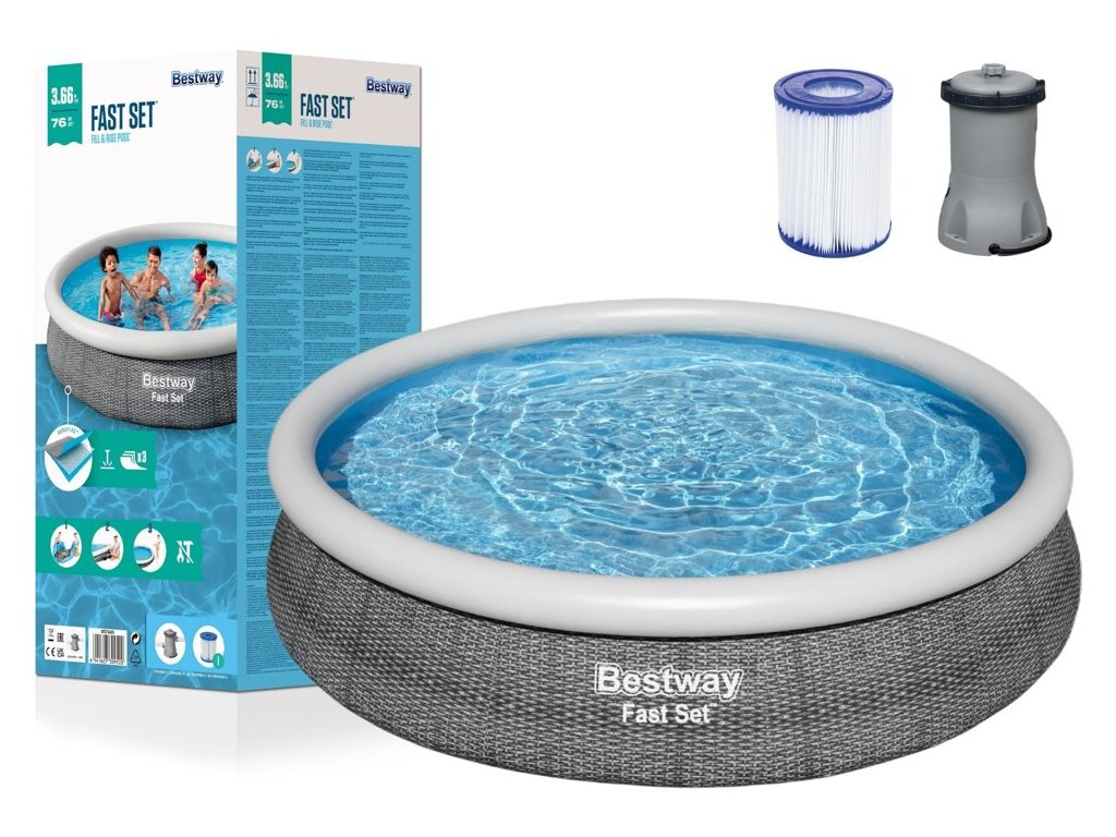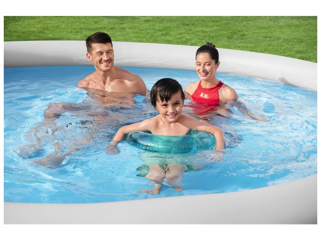 Zahradní bazén o velikosti 366 x 76 cm od společnosti Bestway je ideální pokud potřebujete dokonalý bazén, který vám nezabere mnoho času na složení, pak je tento produkt právě pro vás. Tento bazén se rozkládá během několika minut, pouze horní kruh vyžaduje nafouknutí, tělo bazénu má vložku, která se zvedá, když je bazén naplněn vodou.