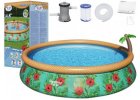 Nafukovací bazén je snadno dostupným řešením pro sezónní koupání na zahradě. Nafukovací konstrukce je bezpečná. V případě potřeby lze bazén rychle nafouknout, uvést do provozu i následně sbalit a uskladnit. Je skvělý díky své nenáročnosti na prostor i terén. V této kategorii si můžete vybrat z pestré škály bazénů všech velikostí.