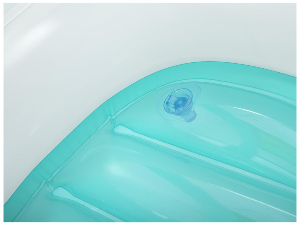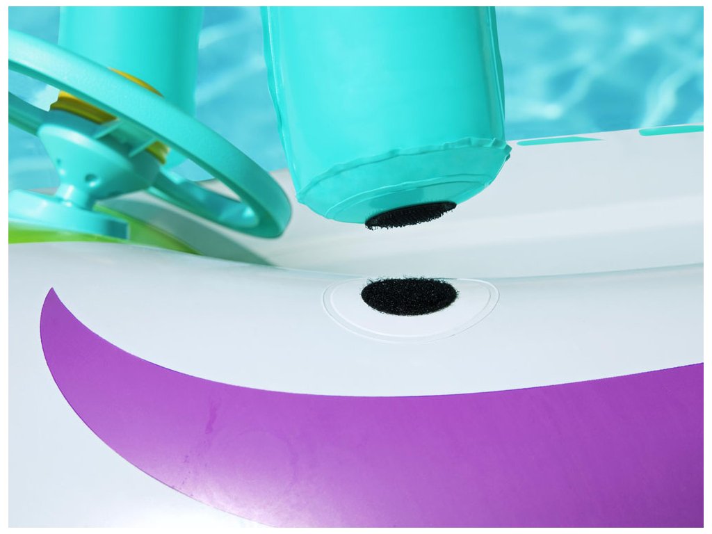 Má odnímatelný stínový kryt UV Careful™, který poskytuje dítěti ochranu před sluncem a stín v horkých dnech. Kryt se upevňuje na suchý zip, což umožňuje snadné nasazení a sundání stříšky. Další výhodou je nafukovací dno, které umožní dítěti cítit se pohodlně během plavby po vodě. Na dně člunu je také okénko typu peek-a-boo, které umožní vašemu malému kapitánovi obdivovat podvodní svět, a vestavěné řízení s klaksonem zajistí další zábavu. Člun je vyroben z odolného vinylu a jistě přinese mnoho radosti při koupání ve vodě v horkých dnech pro každé dítě.
