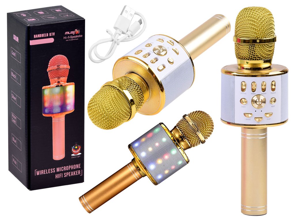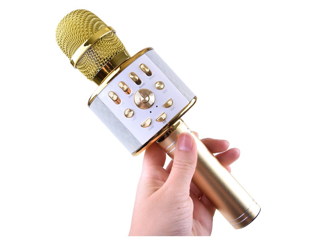 Bezdrátový karaoke mikrofon zlatý