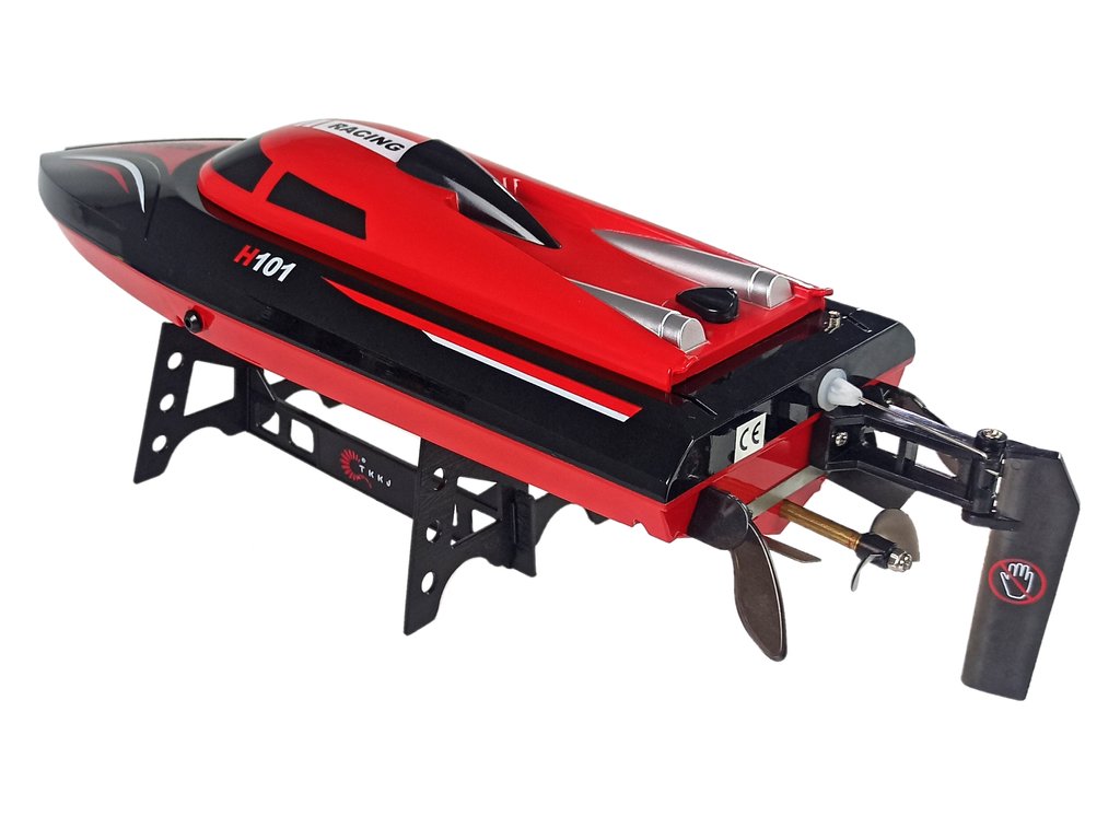 Motorový člun má speciální konstrukci, která zabraňuje vniknutí vody dovnitř. Je ideální pro vodní závody! Dálkové ovládání vysílá na frekvenci 2,4 GHz, která nezpůsobuje rušení při ovládání dvou vozidel. Člun dosahuje rychlosti až 35 km/h.