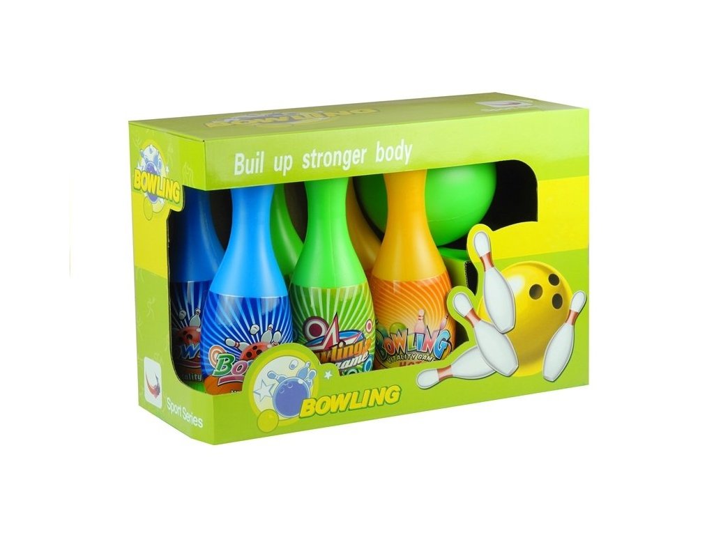 - Sada pro malého sportovce je vybavena 6 barevnými kuželkami a bowlingovou koulí.