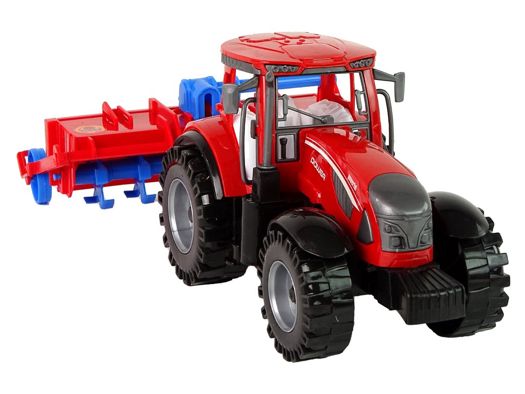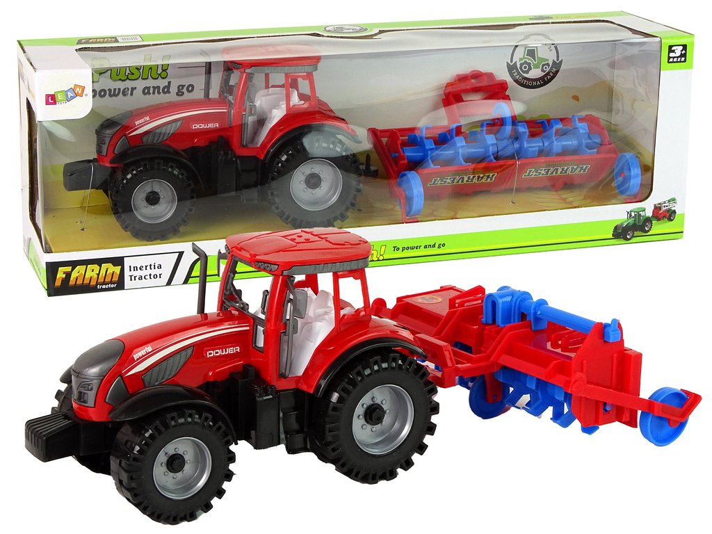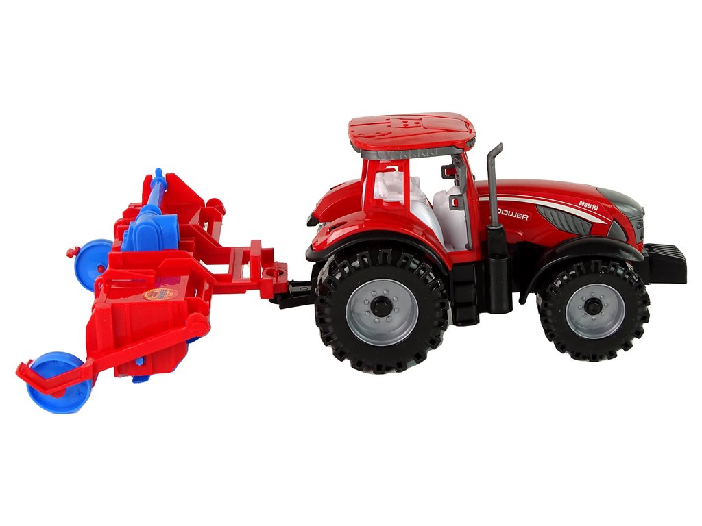 Tento červený traktor, vyrobený z vysoce kvalitního plastu, vypadá velmi realisticky a upoutá pozornost malých milovníků zemědělských strojů. Traktor je vybaven třecím pohonem, který mu umožňuje pohyb vpřed a vzad. Při jízdě se pohybují části pluhu, což dodává hře autentický nádech a umožňuje dětem simulovat práci na poli.