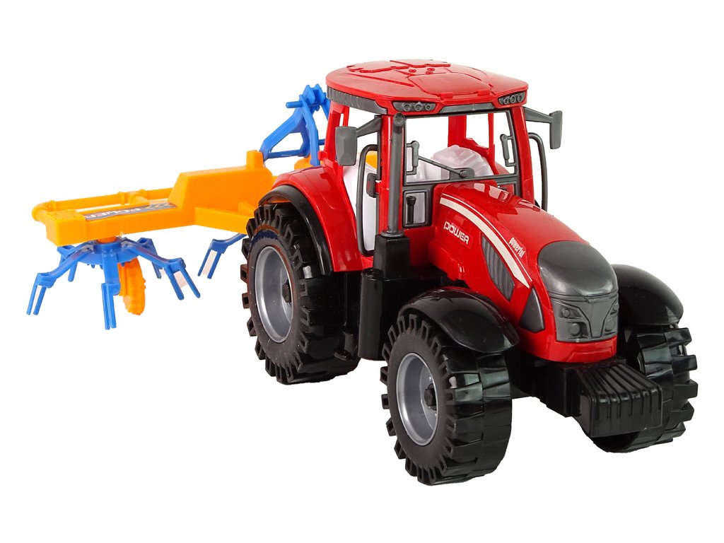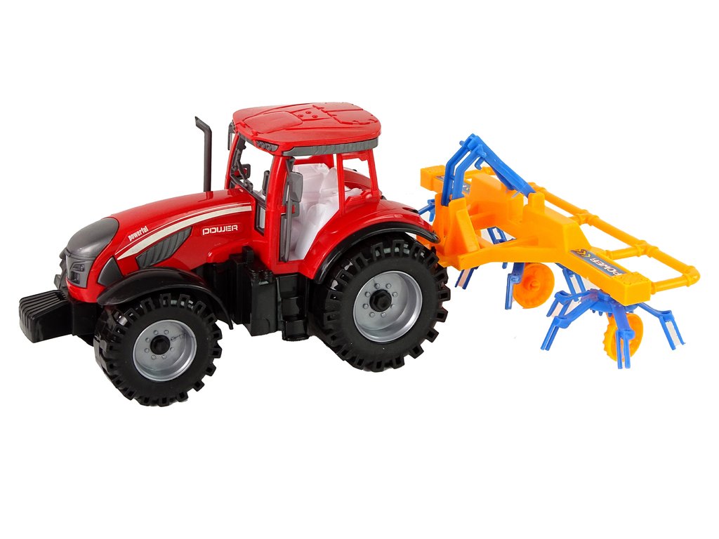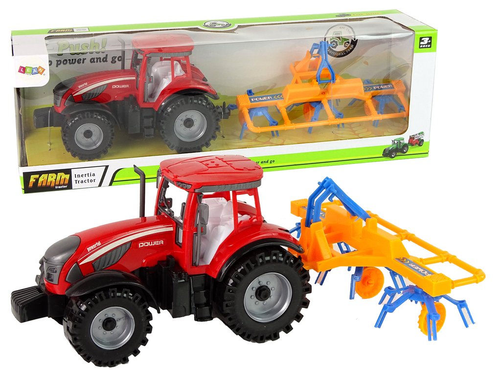 V této sadě nalezneme červený traktor spolu se shrnovačem sena, který je připevněn na zadní části vozidla. Traktor má třecí pohon, který mu umožňuje pohyb vpřed a vzad. Při jízdě se pohybují části shrnovače.