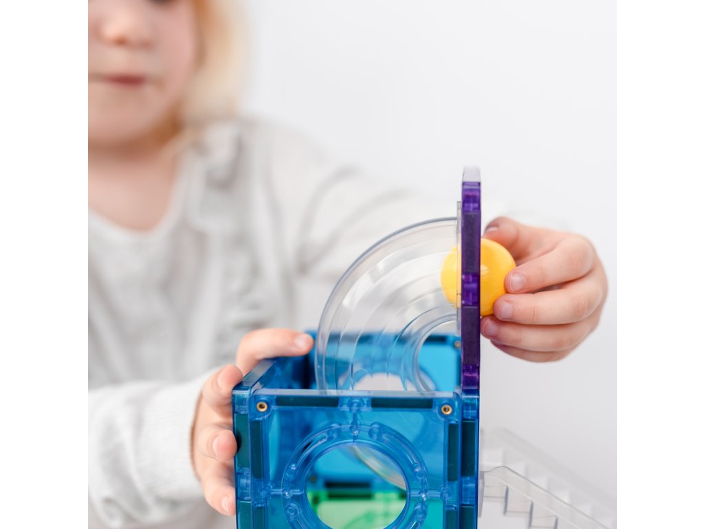 Podpora rozvoje dovedností – hra s kuličkovou dráhou rozvíjí jemnou motoriku, kreativitu a prostorovou představivost.