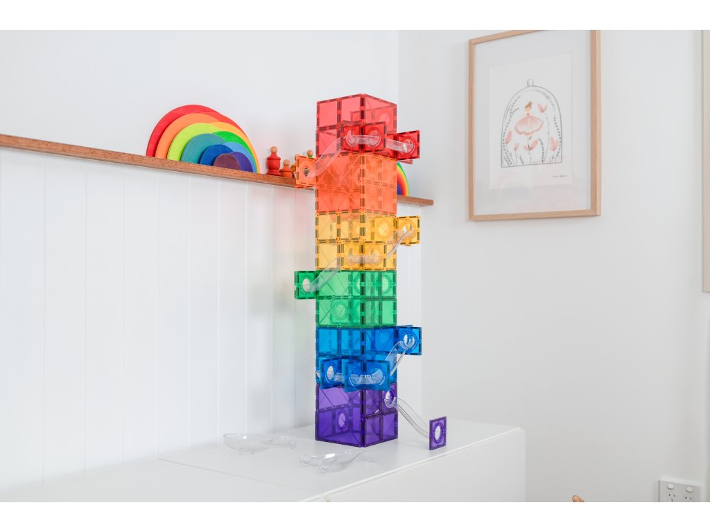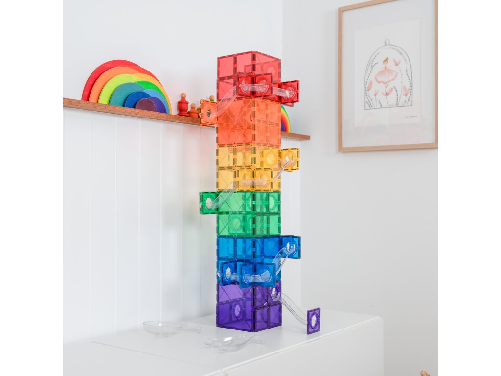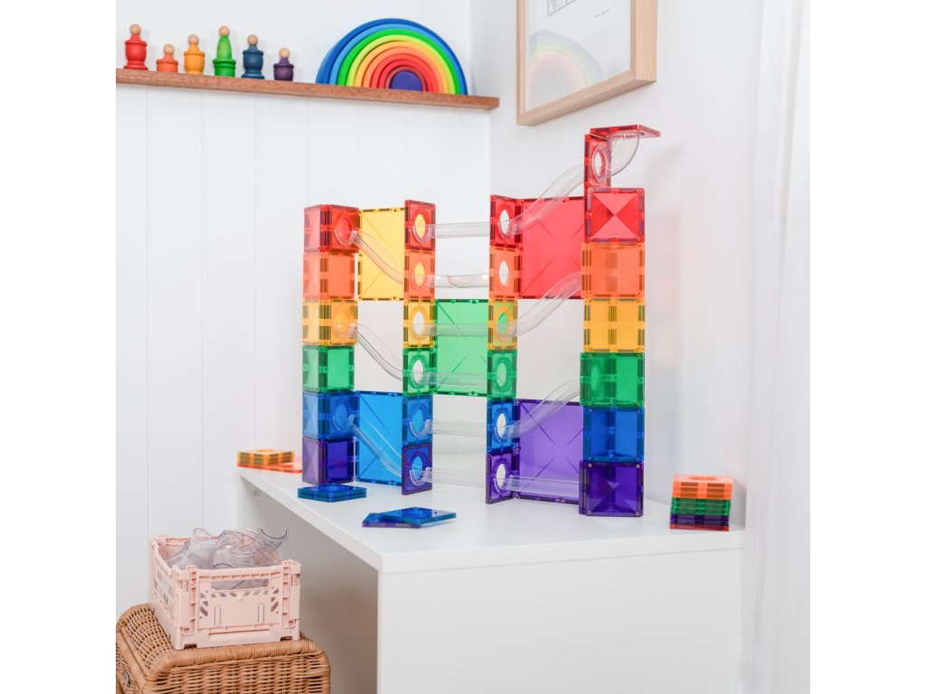 Magnetická kuličkodráha Connetix Tiles je perfektní startovací sada pro malé stavitele i pro ty, kteří chtějí rozšířit své kuličkové dráhy. Sestavujte, experimentujte a nechte děti rozvíjet svou fantazii!