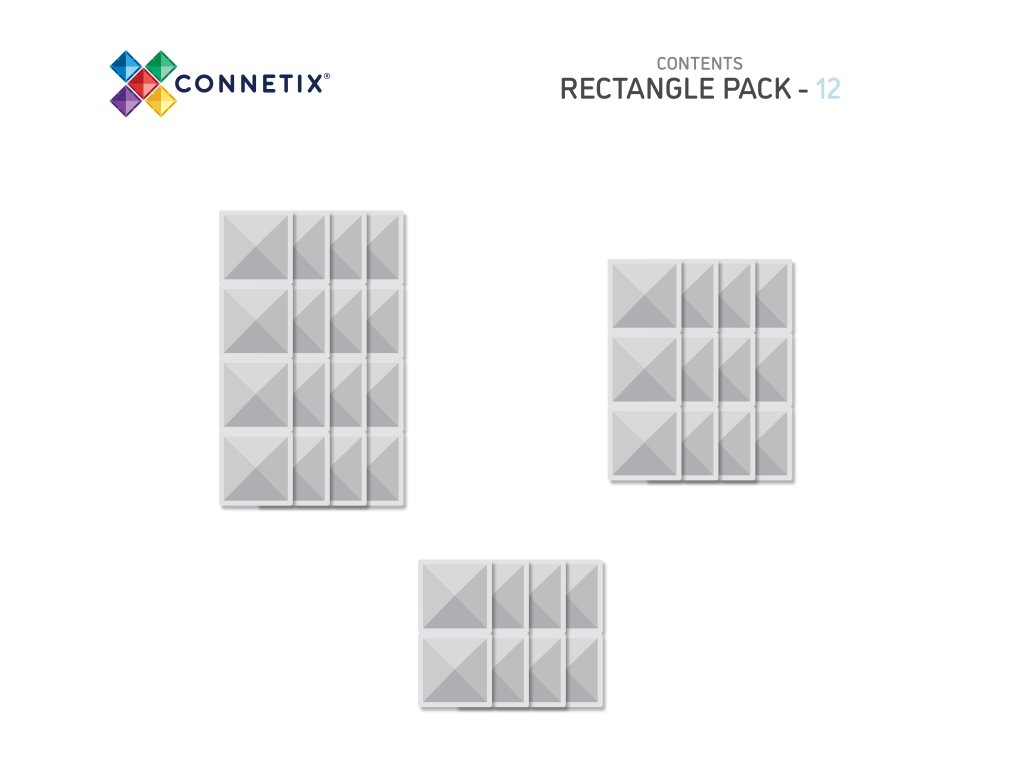 Connetix Tiles - Magnetická Stavebnice Průhledná Obdélníky 12 ks