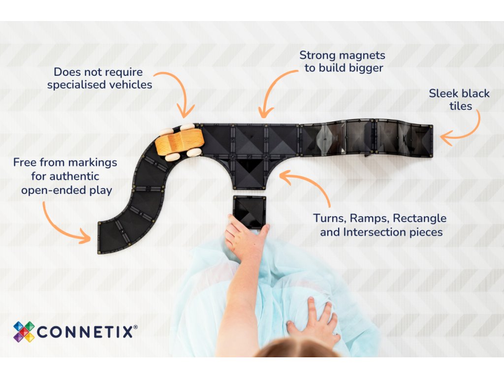 Rozšiřte svou sbírku o tuto unikátní sadu a užijte si nekonečnou zábavu s magnetickými díly Connetix - Silnice!