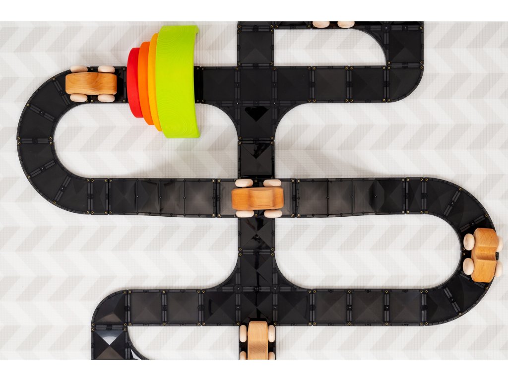 - Kreativní možnosti: Díky jedinečným dílům (rampy, zatáčky, křižovatky) můžete vytvářet vlastní závodní dráhy, silnice, mosty a další úžasné stavby.