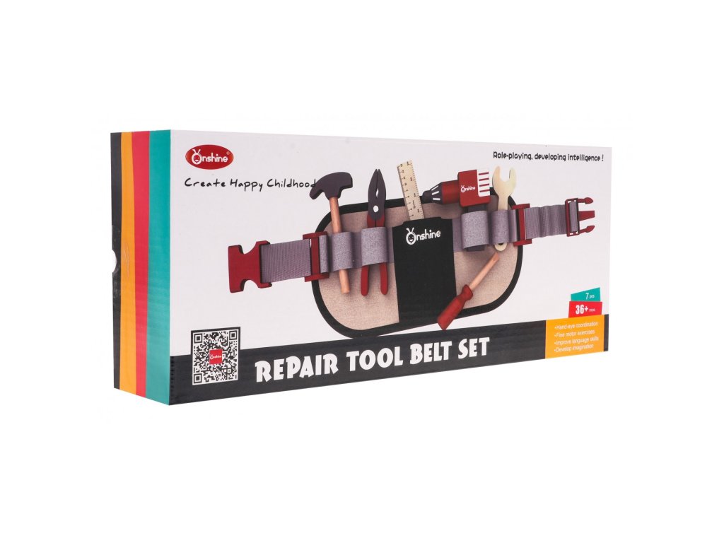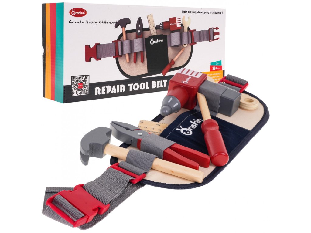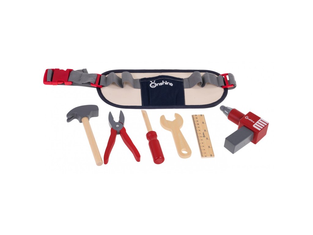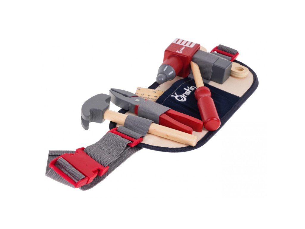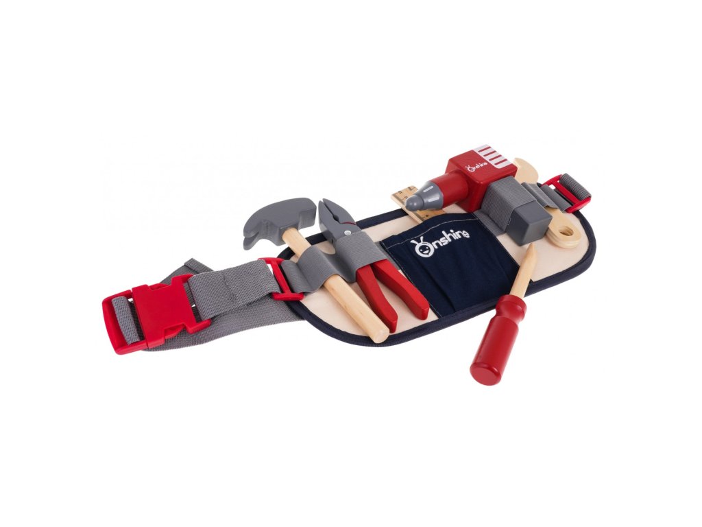 Sada nářadí s opaskem je nutností pro každého malého kutila. Nářadí je vyrobeno ze dřeva, je bezpečné a odolné a nemá ostré hrany. Opasek s nářadím je nastavitelný, uprostřed má kapsu a 5 přihrádek, do kterých lze vložit veškeré příslušenství sady.