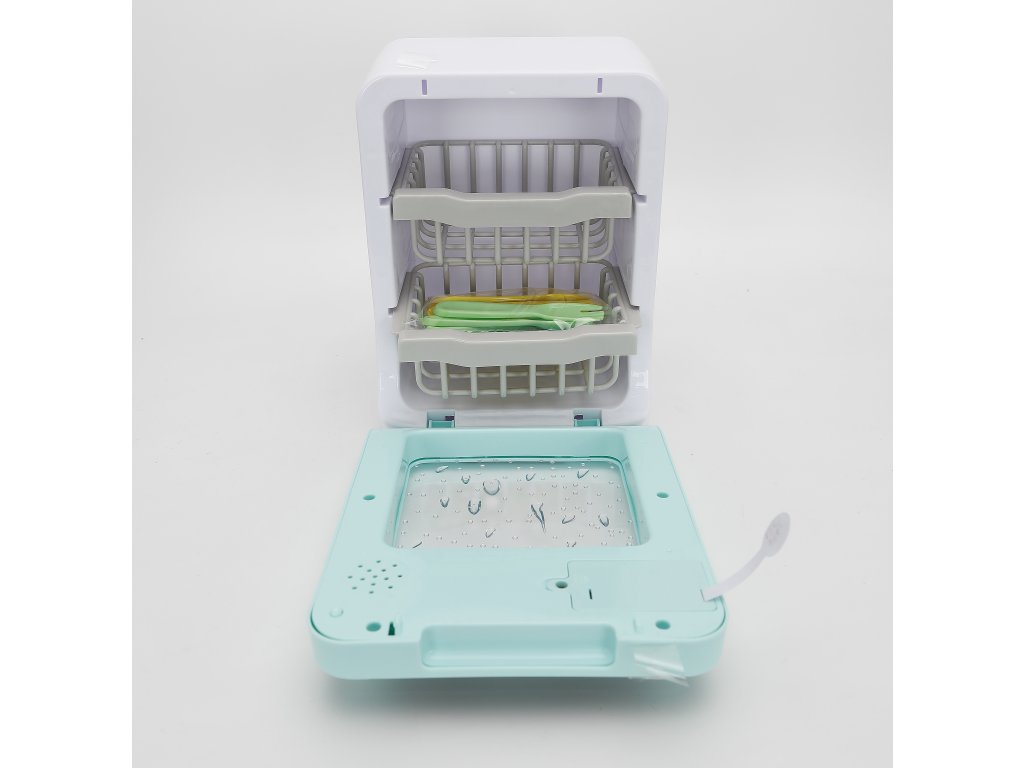 Stylová dětská myčka nádobí v realistickém designu krásně doplní každou dětskou kuchyňku. Uvnitř najdete dva patra košů a průhledná dvířka s efektem kapek vody – vše působí jako skutečná myčka. Po spuštění se rozsvítí světelný efekt, který simuluje mycí proces a děti tak mohou pozorovat „mytí“ nádobí.