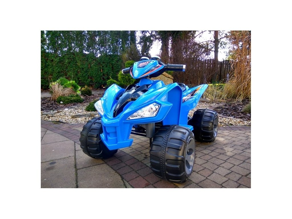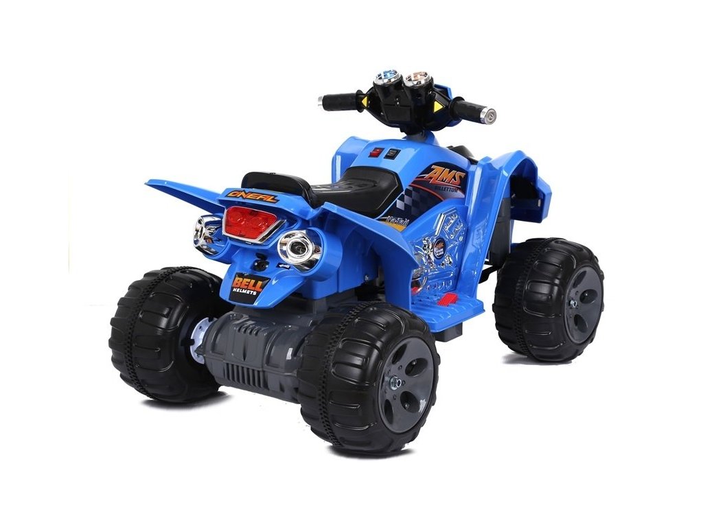 Dětská elektrická čtyřkolka je určena pro děti od 3 let. Má funkci automatické brzdy, která se aktivuje ihned po spuštění nohy z plynového pedálu. Čtyřkolka nabízí předem nahrané melodie a klakson na volantu.