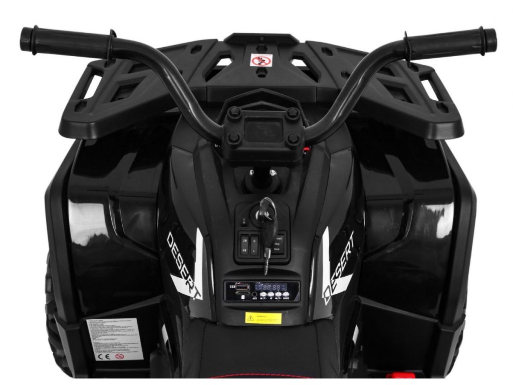 Mezi vybavení patří hudební panel se vstupy MP3, SD, AUX, USB a předem nahranými melodiemi. Čtyřkolka Desert má přední i zadní LED světla, umožňuje jízdu ve všech směrech a její nosnost je do 50 kg.