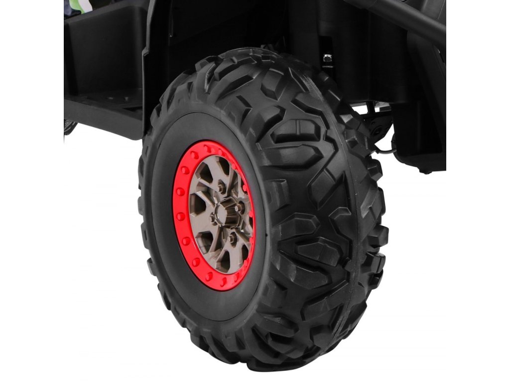 Dětská elektrická čtyřkolka je vybavena čtyřmi elektrickými motory a širokými koly z Eva materiálu. Čtyřkolka hravě zvládne různé typy terénu, nezpevněný povrch i kopce.