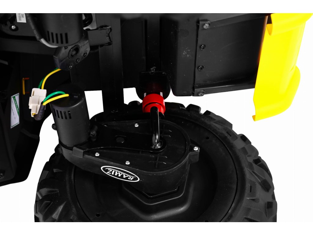 Dětská elektrická čtyřkolka je vybavena čtyřmi elektrickými motory a širokými koly z Eva materiálu. Čtyřkolka hravě zvládne různé typy terénu, nezpevněný povrch i kopce.