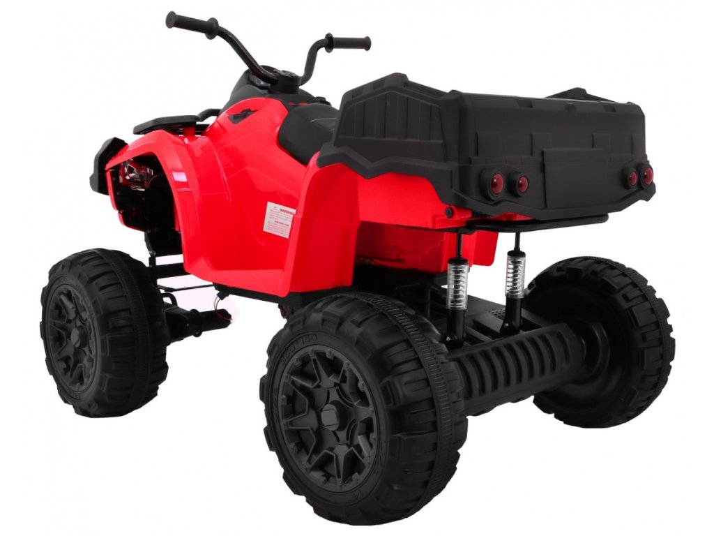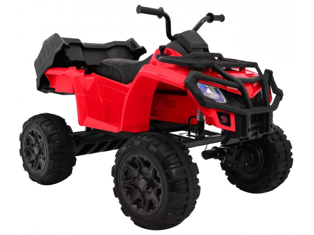 Dětská elektrická čtyřkolka ATV XL má baterii s kapacitou 12V 10Ah a čtyři motory o výkonu 45W, to znamená, že čtyřkolka má pohon 4x4. O pohodlnou jízdu se postarají pěnová EVA kola a sedadlo, které je vyrobeno z ekologické kůže.