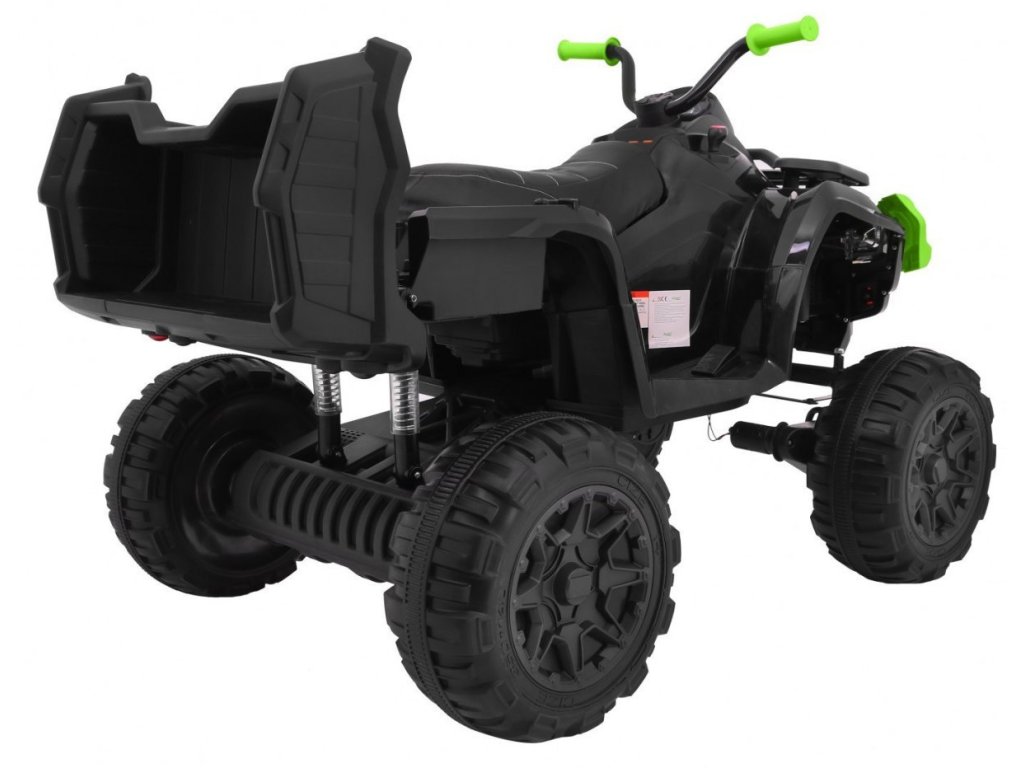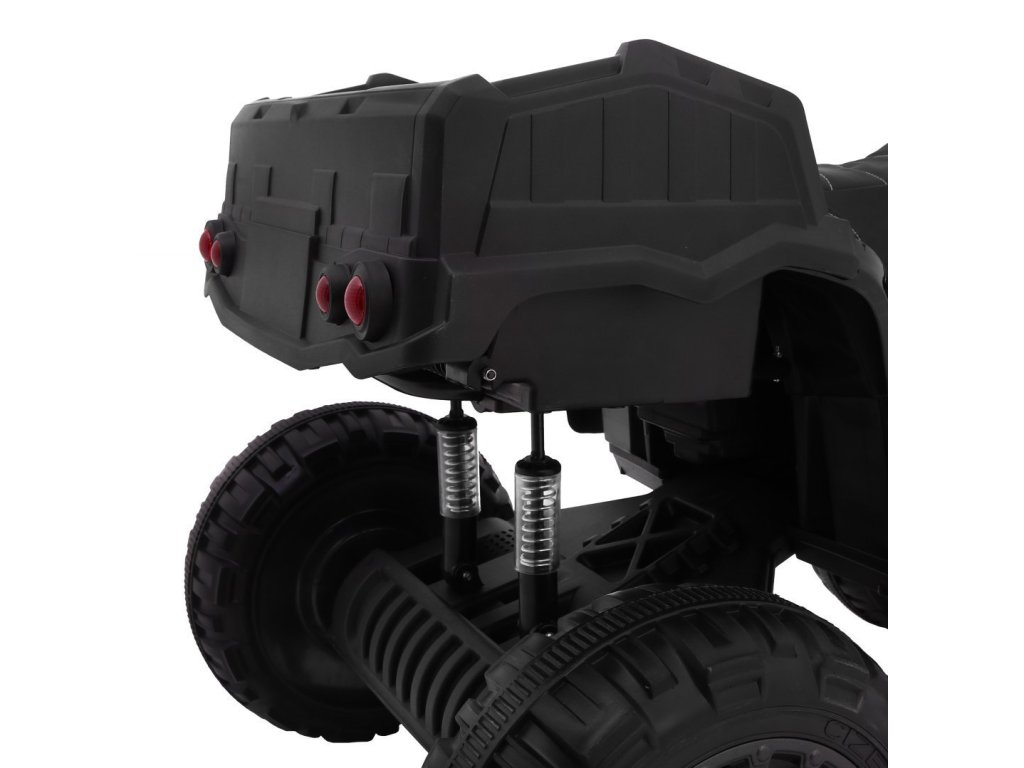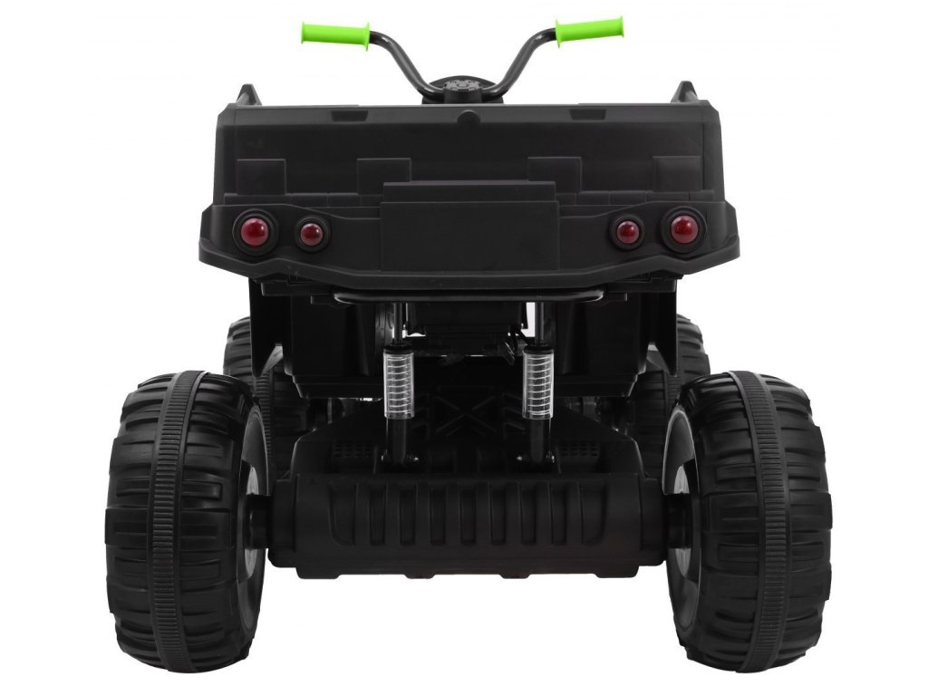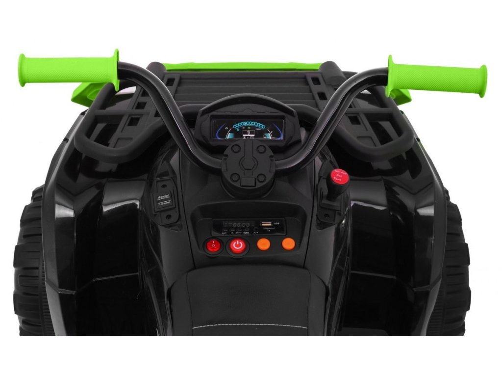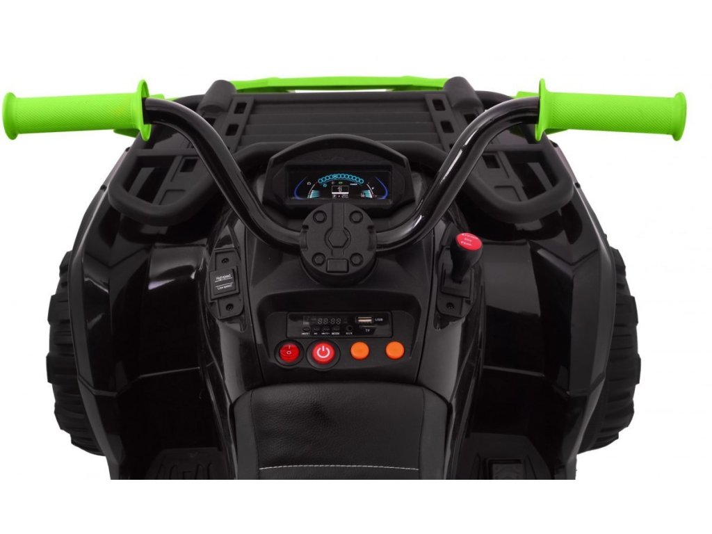 Čtyřkolka vás zaujme svým vybavením jako jsou přední LED světla a hudební panel, který má vstup pro MP3, SD kartu, AUX a USB, FM rádio a tlačítka s předehranými melodiemi a klaksonem. Čtyřkolka má přední a zadní tlumiče nárazu. Při startování uslyšíte zvuky motoru.
