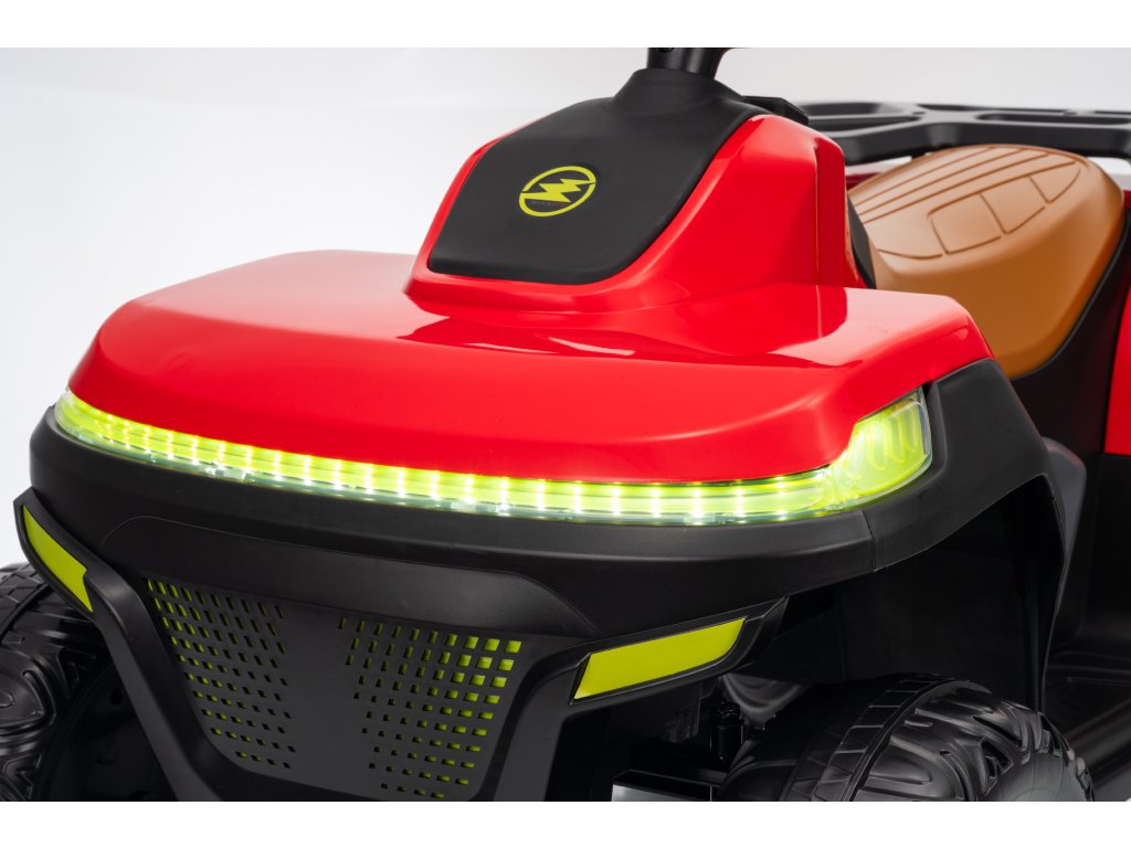 Dětská elektrická čtyřkolka je vybavena dvěma motory o celkovém výkonu 90W. Čtyřkolka hravě zvládne různé typy terénu, nezpevněný povrch i kopce.
