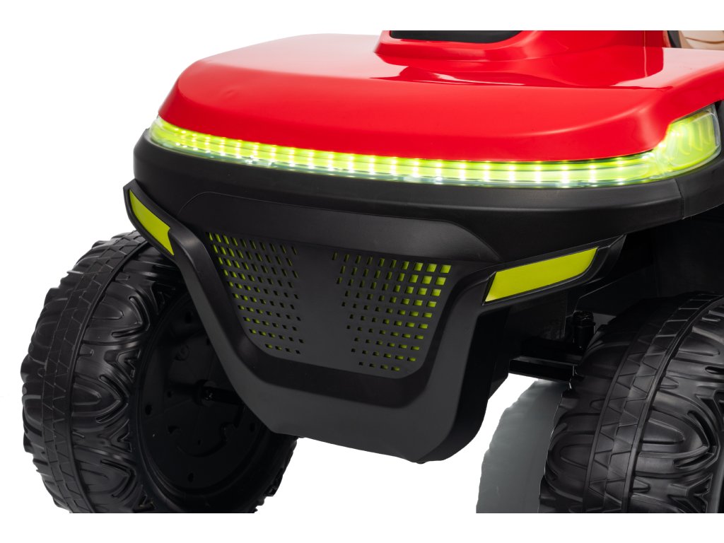 Mezi vybavení patří hudební panel se vstupy USB a MP3. Čtyřkolka má přední a zadní LED světla, umožňuje jízdu ve všech směrech a její nosnost je do 30 kg.