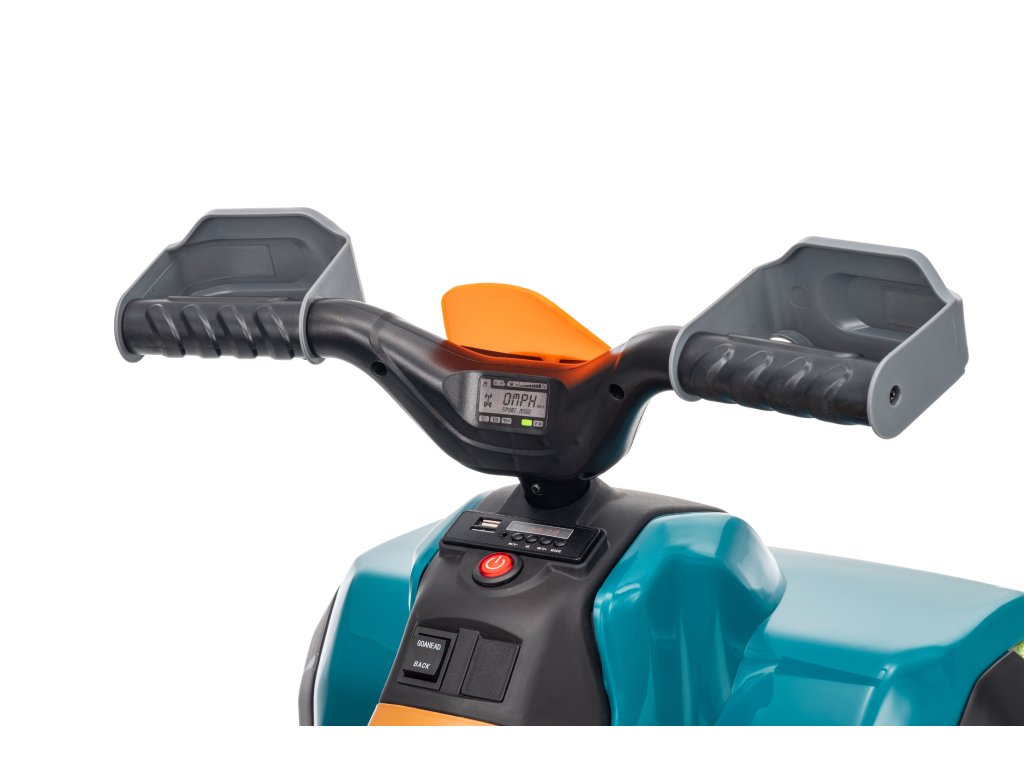Dětská elektrická čtyřkolka je vybavena dvěma motory o celkovém výkonu 90W. Čtyřkolka hravě zvládne různé typy terénu, nezpevněný povrch i kopce.