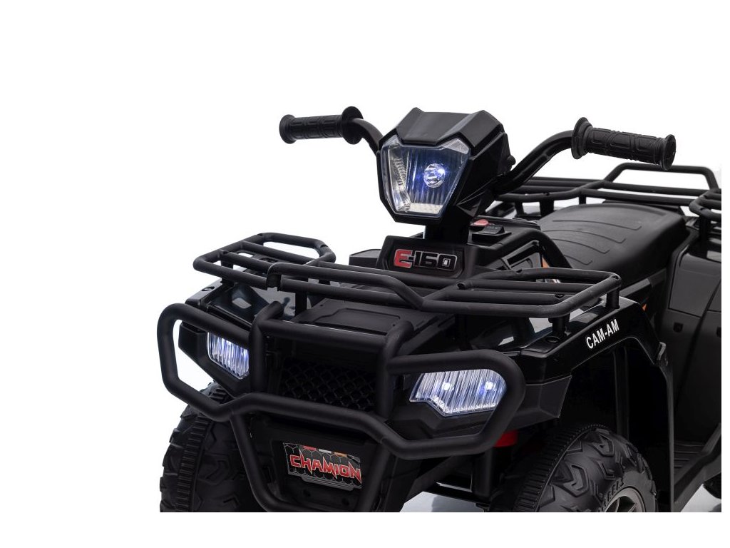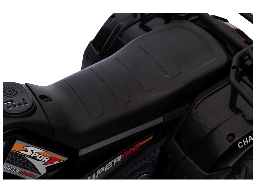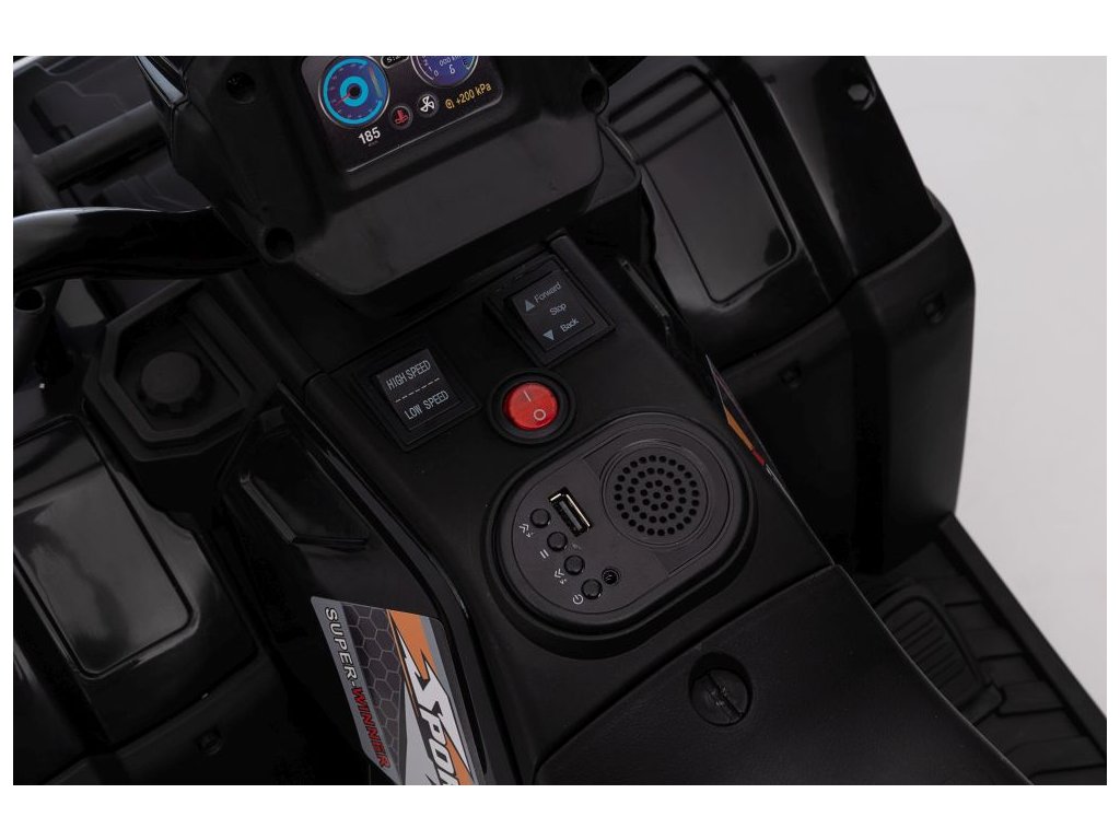 Mezi vybavení patří hudební panel se vstupy USB a MP3. Čtyřkolka má přední LED světla, umožňuje jízdu ve všech směrech a její nosnost je do 25 kg.