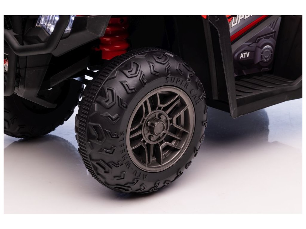 Dětská elektrická čtyřkolka je vybavena dvěma motory o celkovém výkonu 90W. Čtyřkolka hravě zvládne různé typy terénu, nezpevněný povrch i kopce.