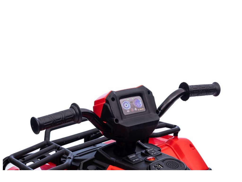 Mezi vybavení patří hudební panel se vstupy USB a MP3. Čtyřkolka má přední LED světla, umožňuje jízdu ve všech směrech a její nosnost je do 25 kg.