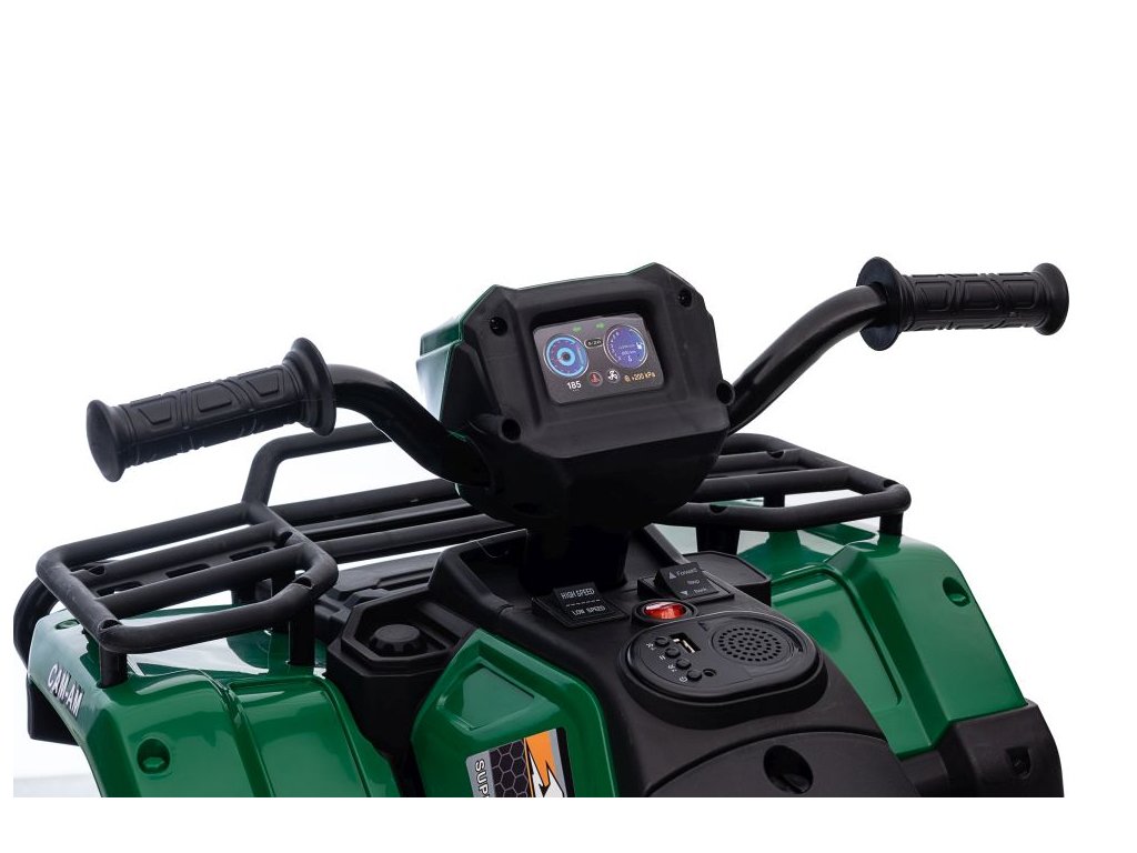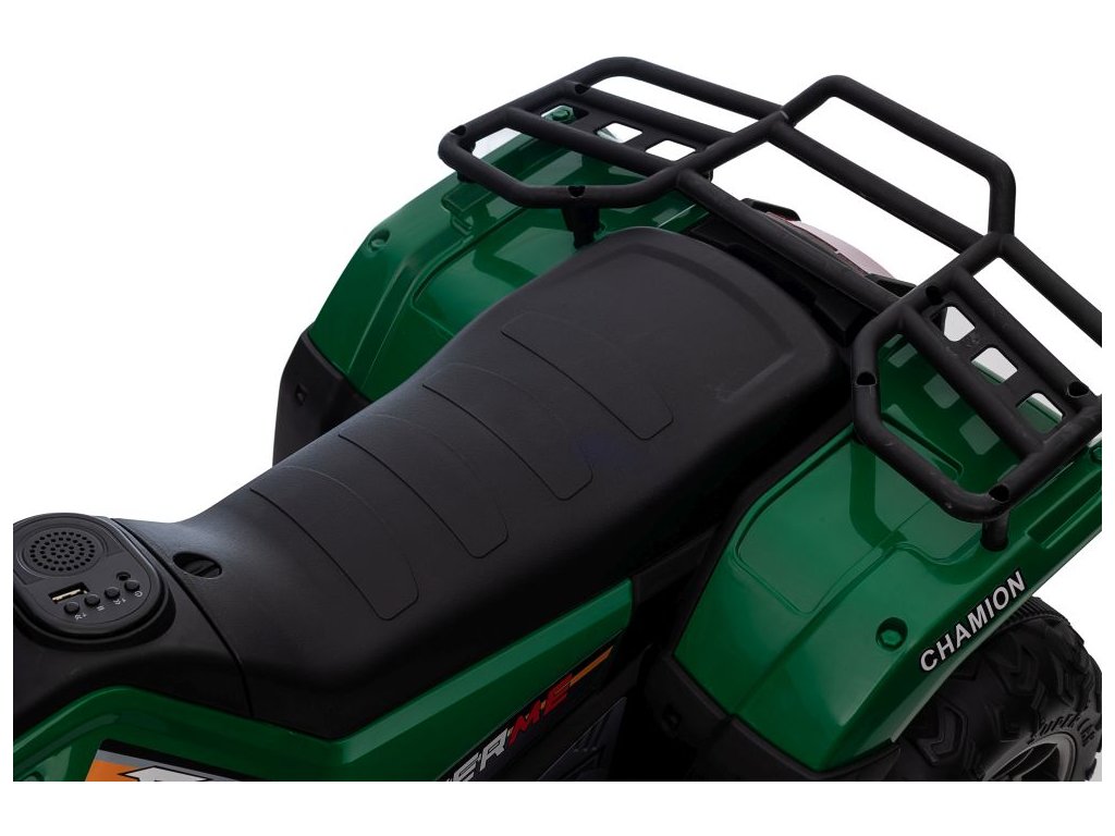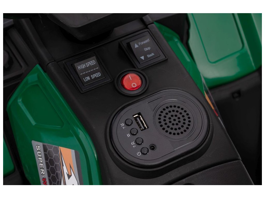 Mezi vybavení patří hudební panel se vstupy USB a MP3. Čtyřkolka má přední LED světla, umožňuje jízdu ve všech směrech a její nosnost je do 25 kg.
