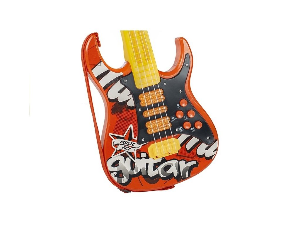 Představujeme funky kytaru pro malého rockera. S touto hračkou splníte sen každého dítěte, které chce stát a skákat na pódiu před stovkami fanoušků. Kdo ví, možná se z ní v budoucnu stane skutečná hvězda?