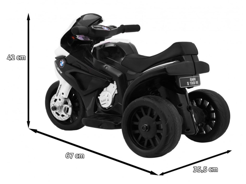 Dětská elektrická motorka s licencí BMW je skvělým doplňkem pro rodiny s dětmi na procházku nebo posezení na zahradě. Díky jízdě na dětské motorce dítě rozvíjí své řidičské schopnosti a také svou rovnováhu. Motorka jezdí jen dopředu a je vybavena ergonomickým sedadlem, které dbá na pohodlí dítěte. Dětská motorka má také zabudované světelné efekty a díky stylovému designu dítě nikdo nepřehlédne. O to, že se Vám dítě ztratí z dohledu se bát nemusíte. Motorka jezdí maximální rychlostí 2 km/h. Motorka je vhodná pro děti od 18 měsíců a je certifikována evropským označením bezpečnosti CE.