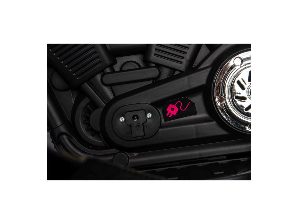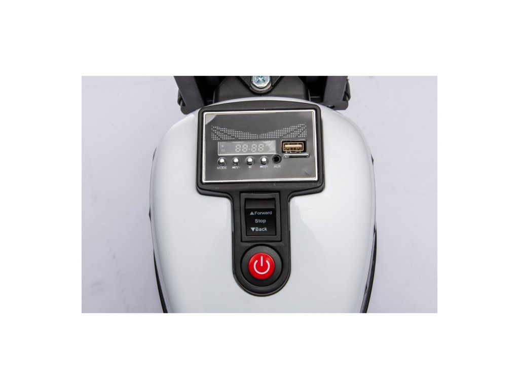 Dětská motorka Chopper Faster s bohatým vybavením a inovativním designem. Interiér autíčka je vybaven plastovým sedadlem, hudebním panelem s Bluetooth, Rádiem, vstupy MP3, USB, SD, AUX a předinstalovanou hudbou. Na cestu si posvítíte předními LED světly.