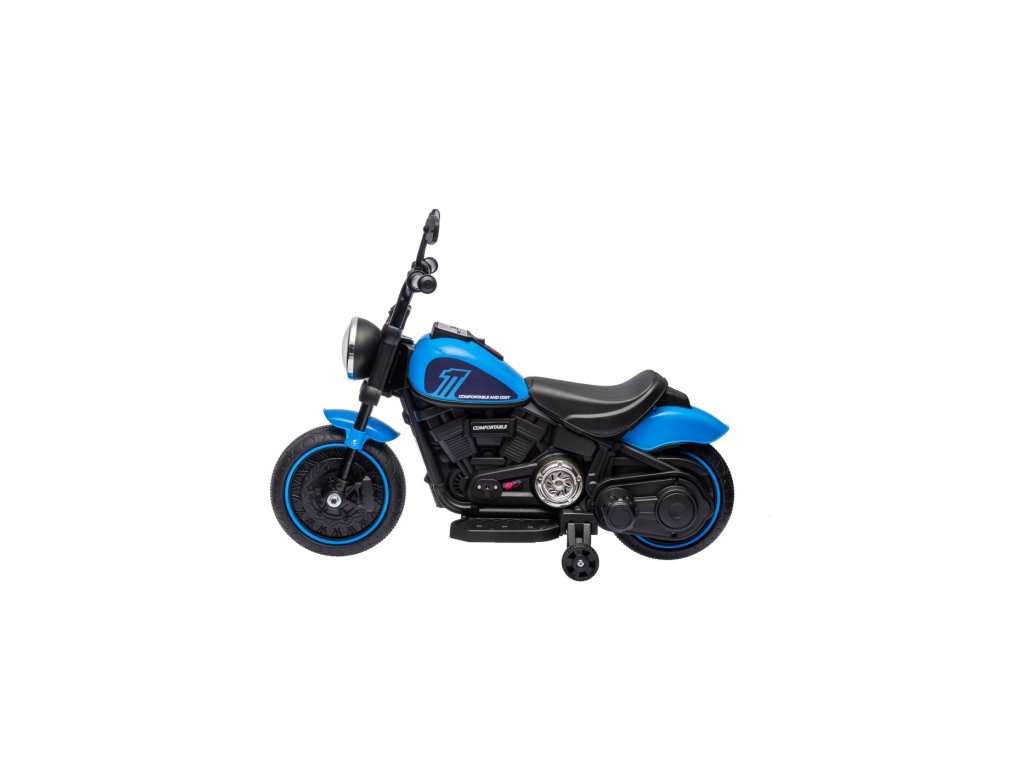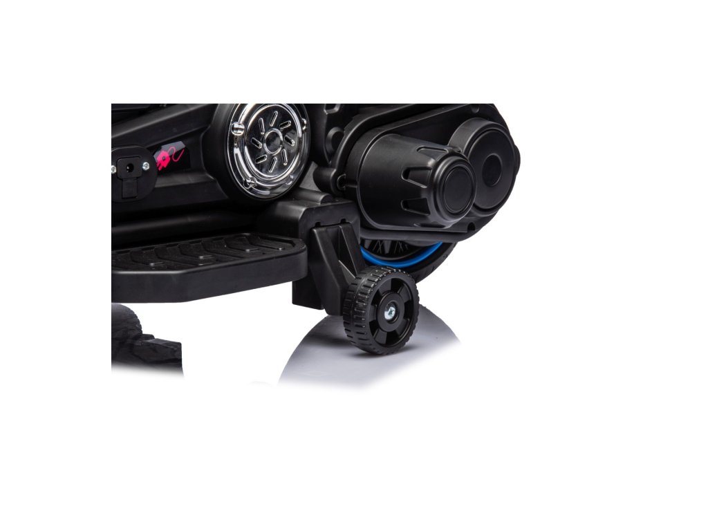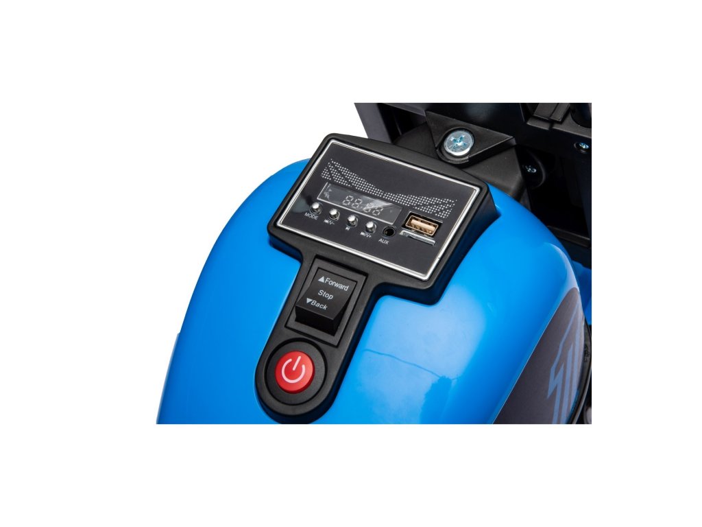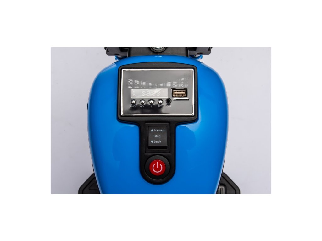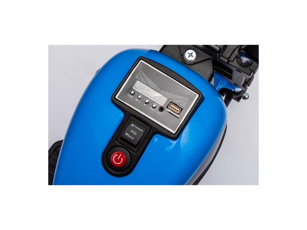 Dětská motorka Chopper Faster s bohatým vybavením a inovativním designem. Interiér autíčka je vybaven plastovým sedadlem, hudebním panelem s Bluetooth, Rádiem, vstupy MP3, USB, SD, AUX a předinstalovanou hudbou. Na cestu si posvítíte předními LED světly.